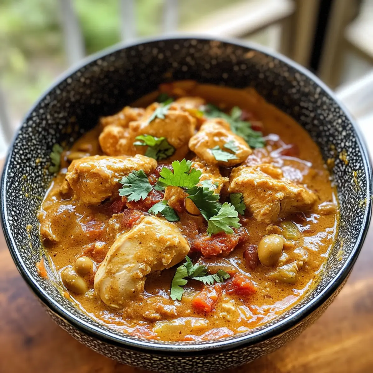 Reduziere die Hitze auf niedrig und lasse den Eintopf für etwa 30-45 Minuten köcheln. Rühre dabei gelegentlich um, um sicherzustellen, dass die Mischung nicht ansetzt. Das Hähnchen sollte zart sein und die Aromen sollten sich wunderbar miteinander verbinden.