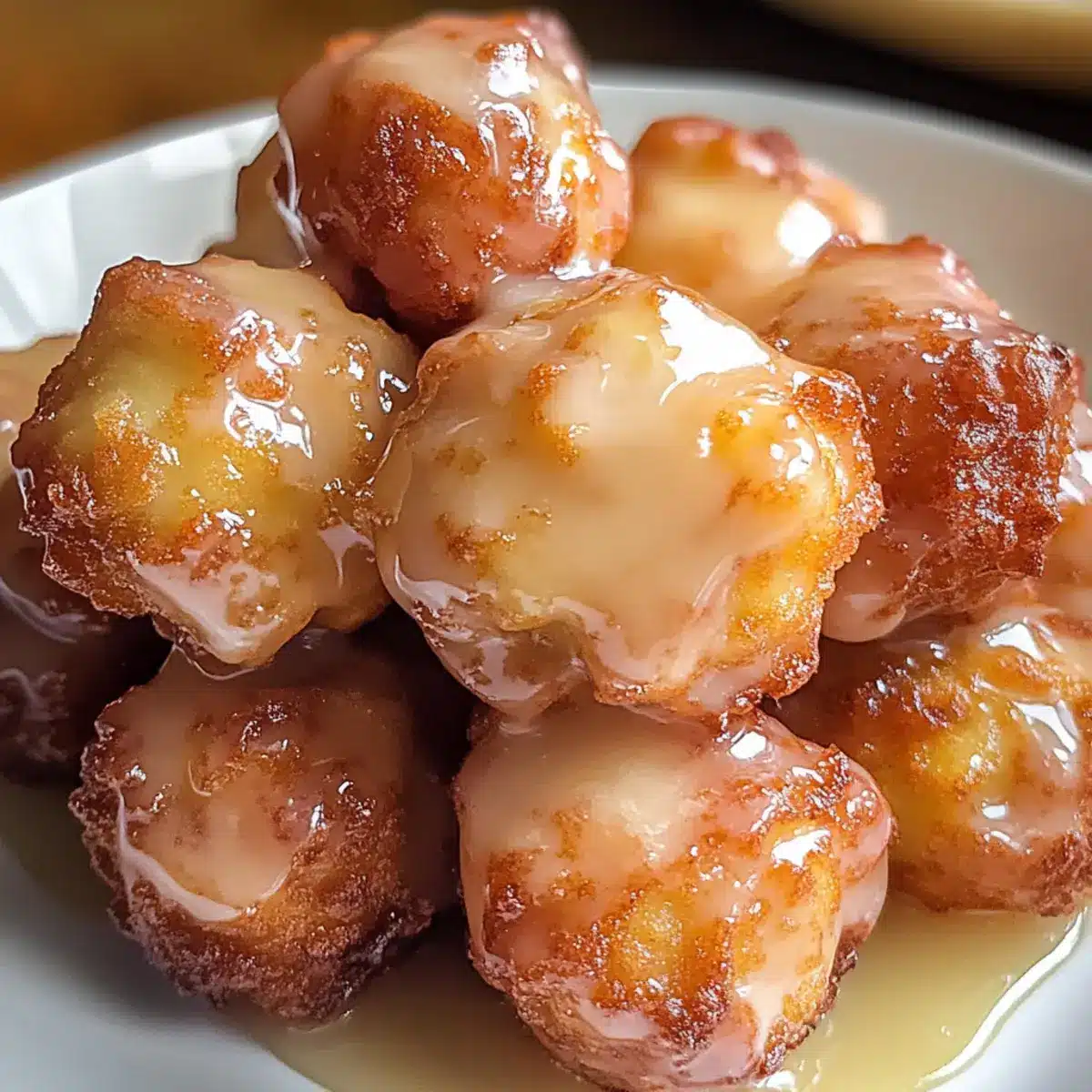 - Bestreiche die warmen Apfelküchlein Bissen großzügig mit der Glasur.