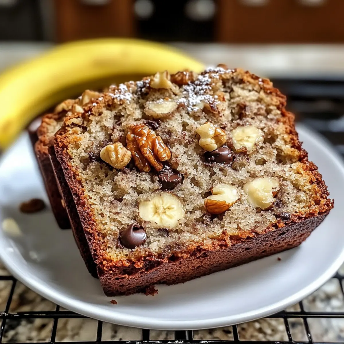 Luftige Textur: Lasse das Bananenbrot nach dem Backen in der Form abkühlen, um die Kruste knackig zu halten. Achte darauf, es nicht zu früh zu stürzen.