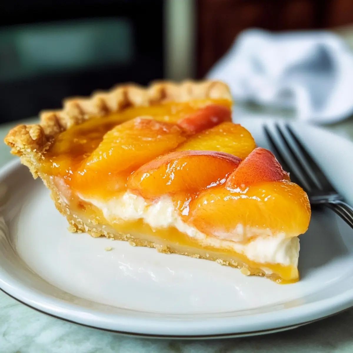 Käsekuchen mit Pfirsichdecke: Kombinieren Sie Ihren Pie mit einem Stück Käsekuchen, der mit einer Pfirsichschicht verfeinert ist, um einen doppelten Genuss zu erleben.