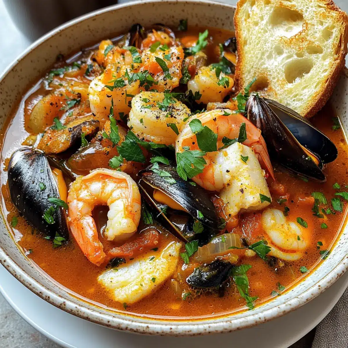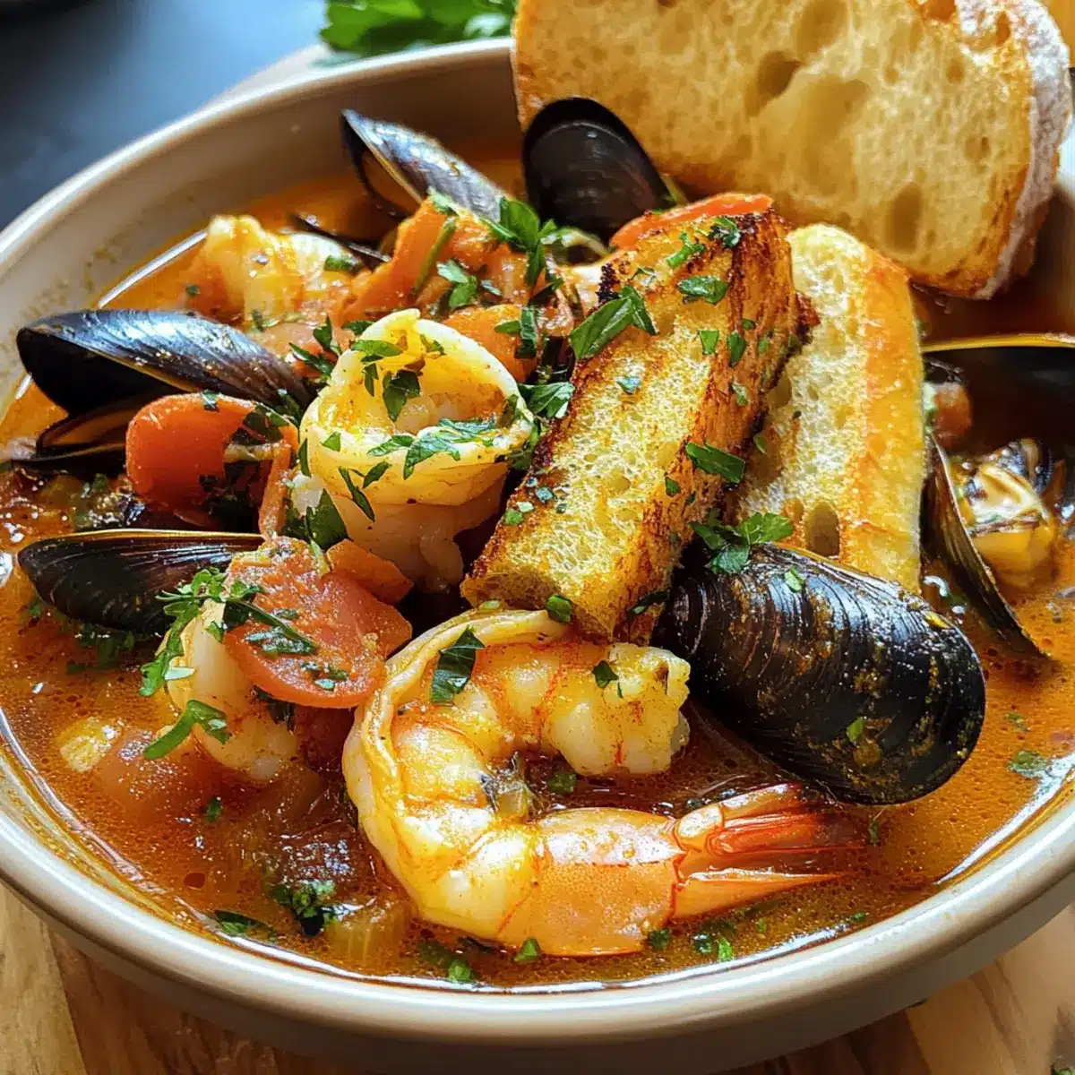 Herzhafter Ansatz: Ergänze die Bouillabaisse mit knusprigen Brötchen oder geröstetem Brot, um die Brühe perfekt aufzunehmen und das Ganze zu einem vollendeten Genuss zu machen.