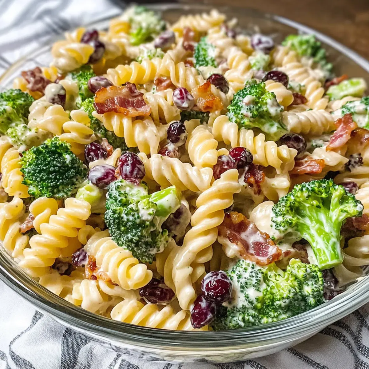 Es war ein sonniger Tag, als ich zum ersten Mal auf einem Picknick-Tisch einen Brokkoli-Pasta-Salat entdeckte – seine Farben schimmerten in der Sonne und die Aromen versprachen, ein Fest für die Sinne zu sein. Diese köstliche Kombination aus zartem Rotini, knackigem Brokkoli, knusprigem Bacon und süßen Cranberries hat sich schnell zu meinem Favoriten entwickelt. Mein Rezept für Brokkoli-Pasta-Salat ist nicht nur zeitsparend für stressige Wochentage, sondern begeistert auch auf jedem Potluck, wo es um den letzten Biss geht. Und das Beste daran? Dieser Salat kann im Voraus zubereitet werden, damit die Aromen Zeit haben, sich perfekt zu entfalten. Neugierig darauf, wie du dieses bunte Gericht ganz einfach nachkochen kannst? Lass uns loslegen!