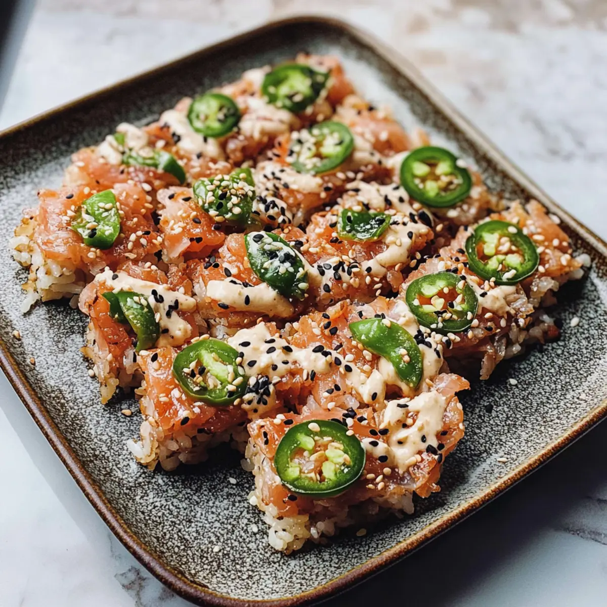 Scharfer Thunfisch Knuspriger Reis für Zuhause