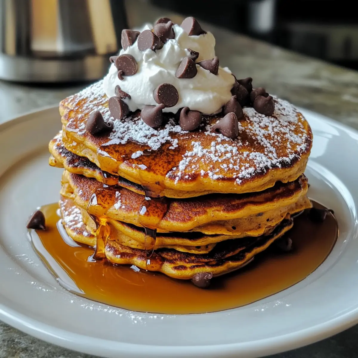 Schokoladenstückchen Kürbis Pfannkuchen für den Herbst