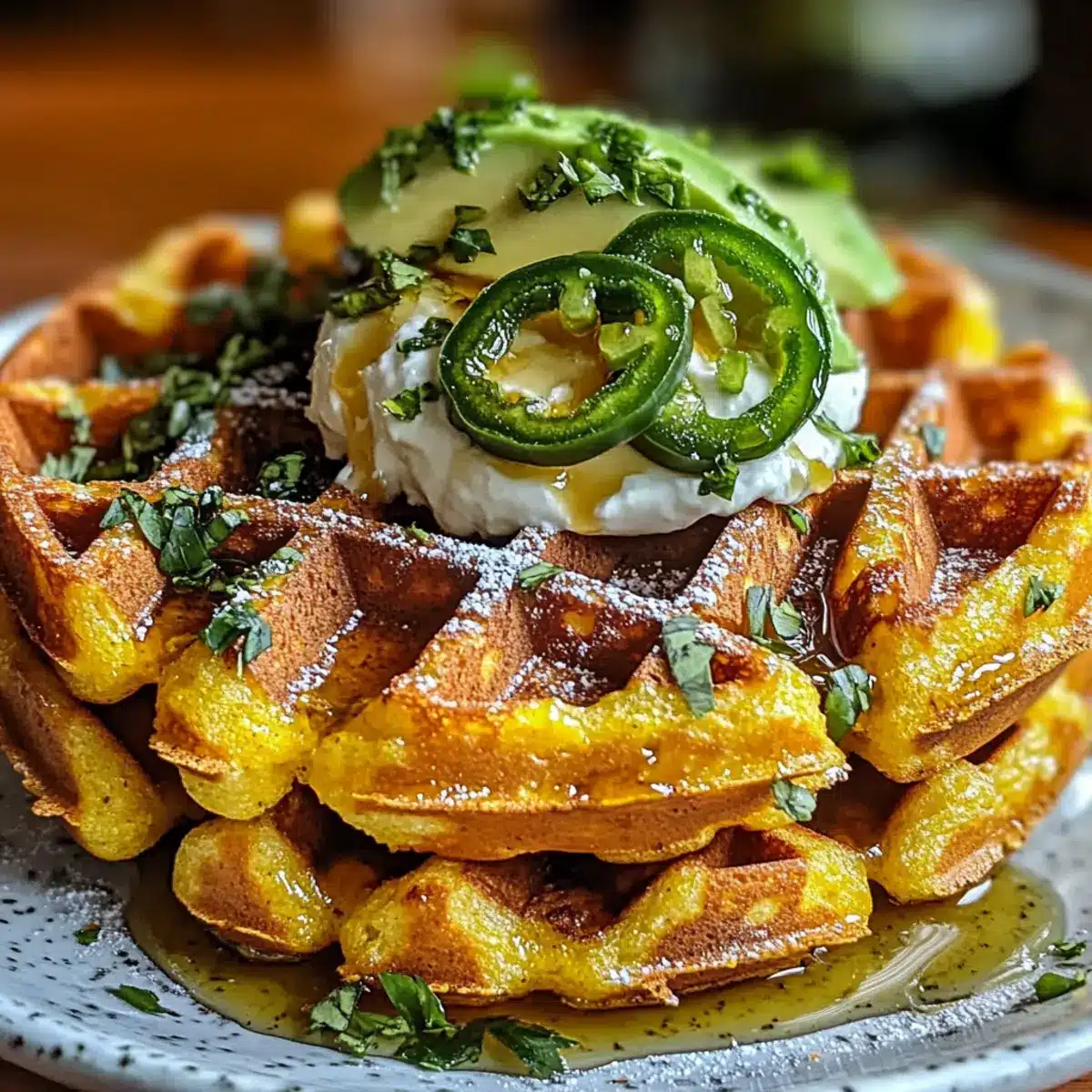 Herzhafte Cheddar-Jalapeño-Maisbrot-Waffeln geniessen
