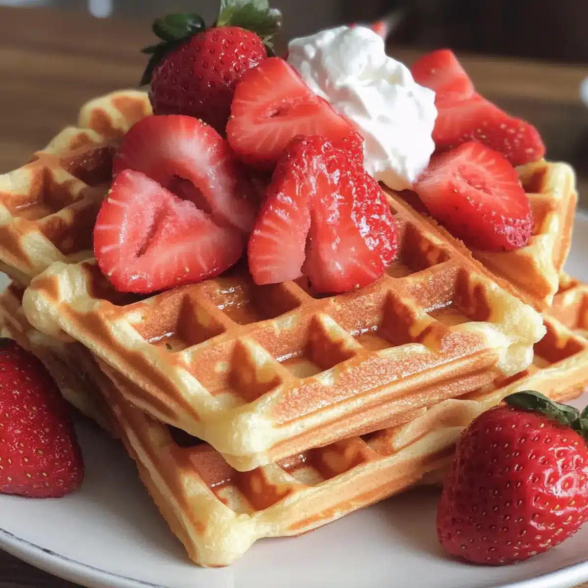 Erdbeer fluffige goldene Waffeln für den perfekten Brunch
