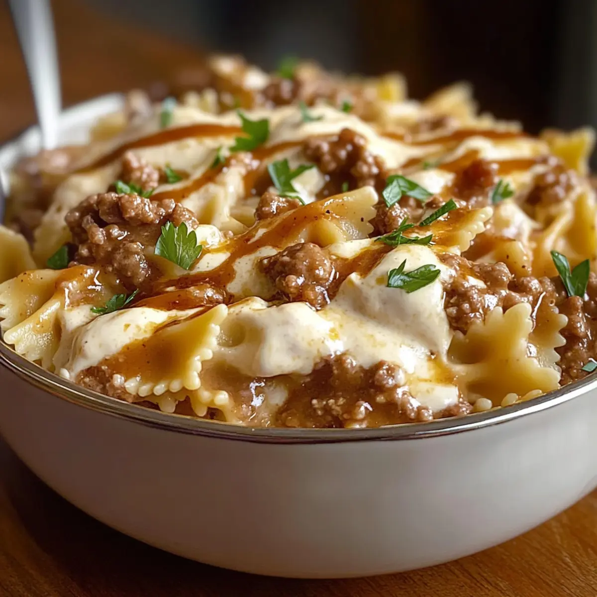 Knoblauchbutter Rindfleisch Käse Schmetterlingsnudeln Genuss