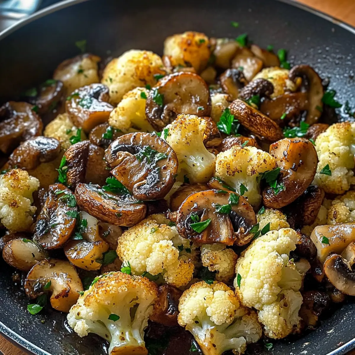 Knoblauch Pilze Blumenkohl Pfanne für schnelle Abende