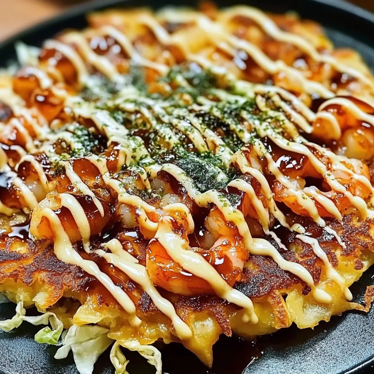 Perfekte japanische Shrimp Okonomiyaki schnell zubereitet