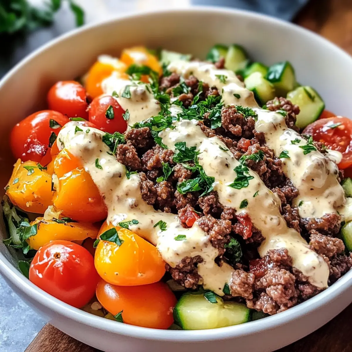 Mediterrane Rinderfleischschalen mit Zitronen-Tahini