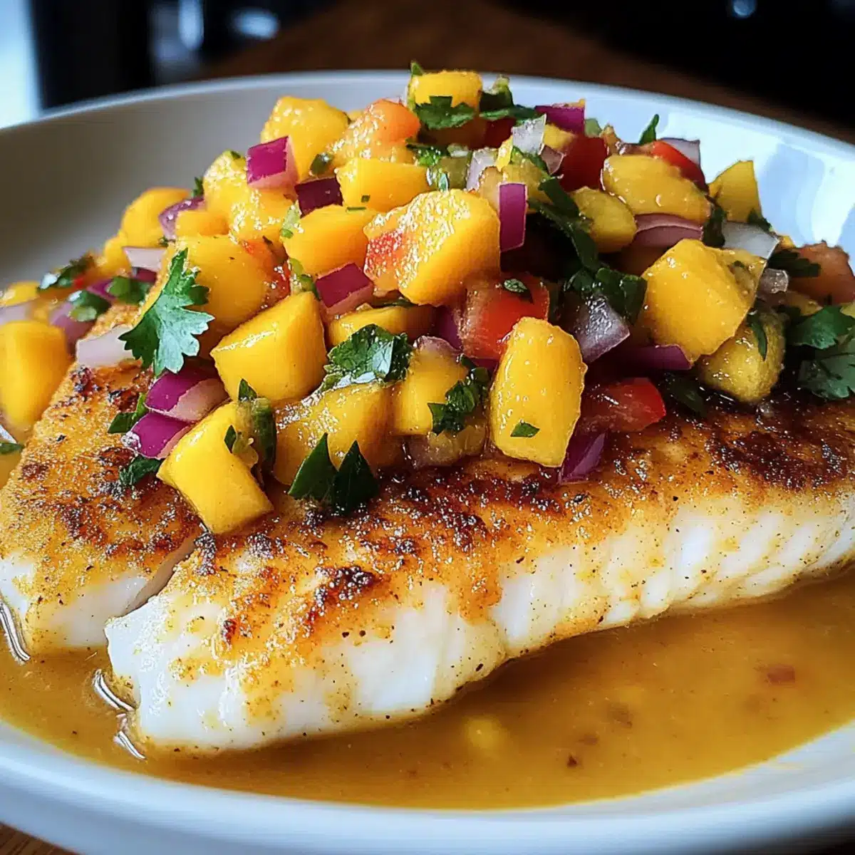 Knuspriger Kokosnuss-Curry-Fisch mit Mango-Salsa