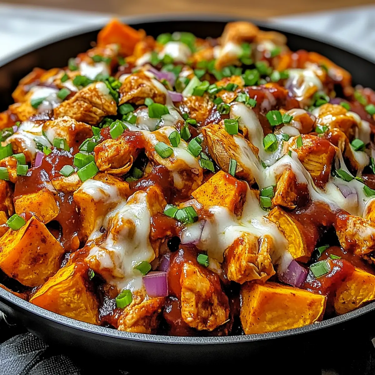 BBQ Hähnchen Süßkartoffel Pfanne für Gelegenheitsköche