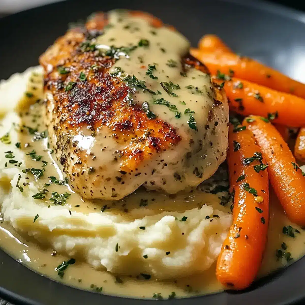 Cremiges Kräuterhühnchen mit Kartoffelpüree für Genuss