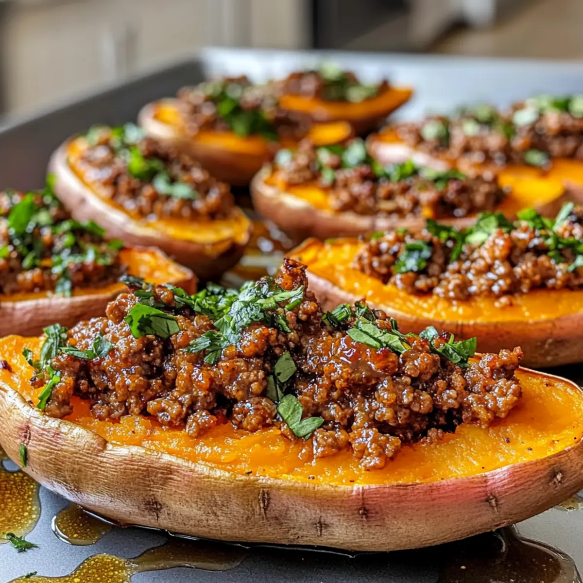 Scharfe Honig-Rinderhackfleisch- und Süßkartoffelboote
