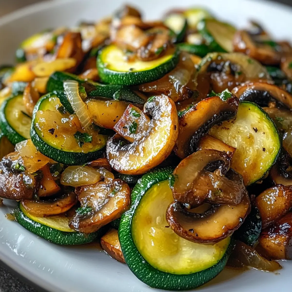 Gebratene Zucchini, Pilze und Zwiebeln schnell zubereiten