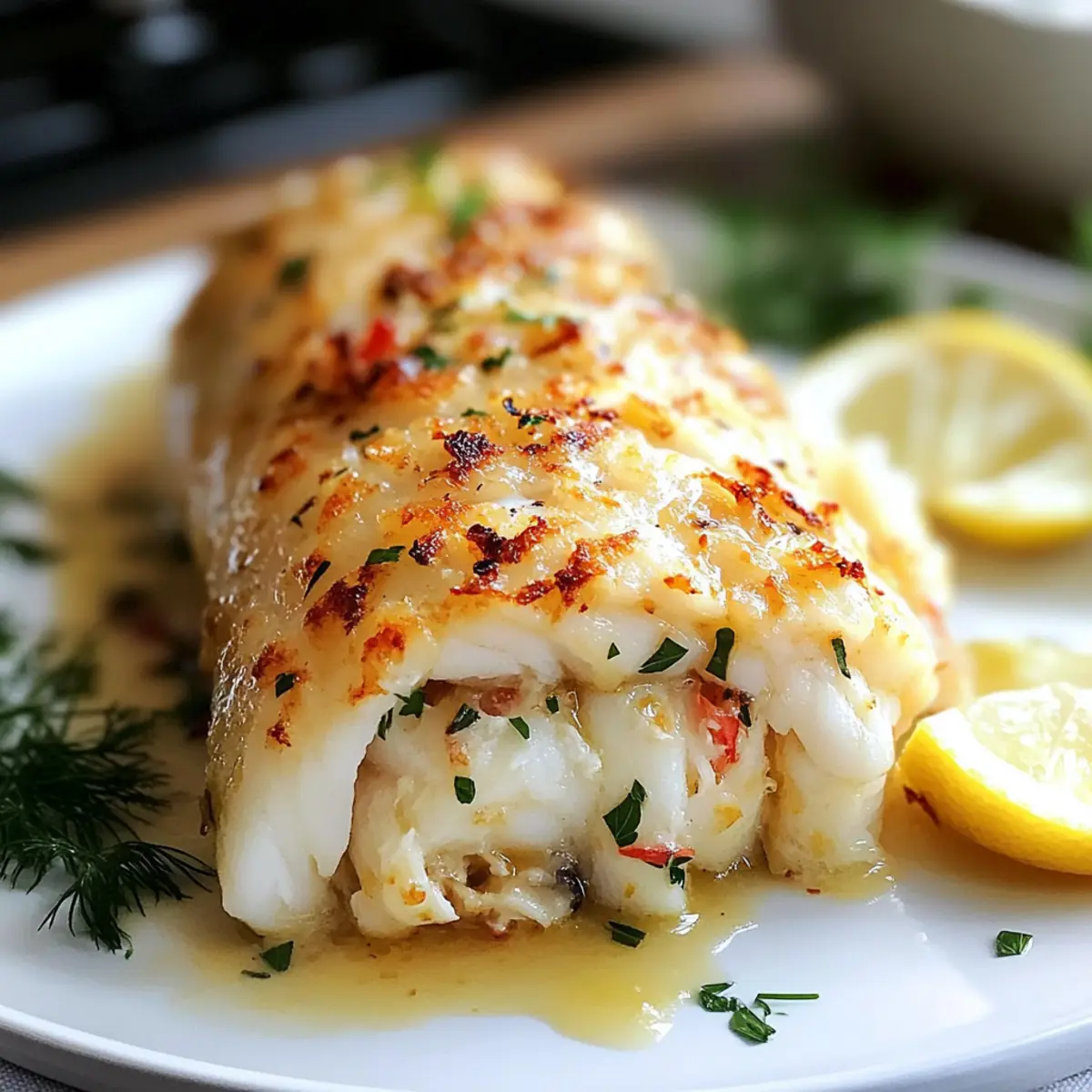 Leckerer Krabbenfarce gefüllter Weissfisch köstlich zubereiten
