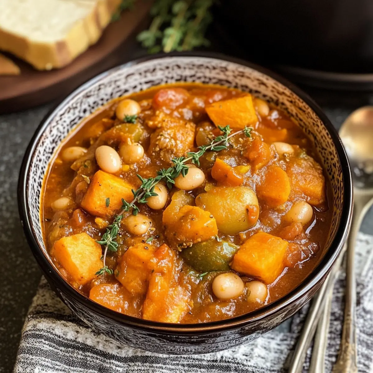Herzhafter veganer Süßkartoffel-Eintopf für kalte Tage