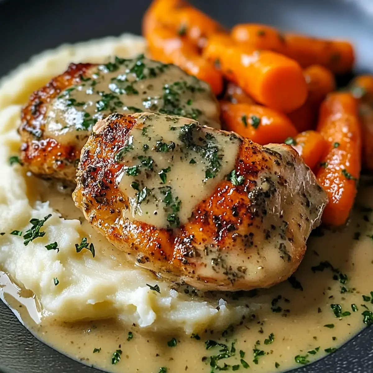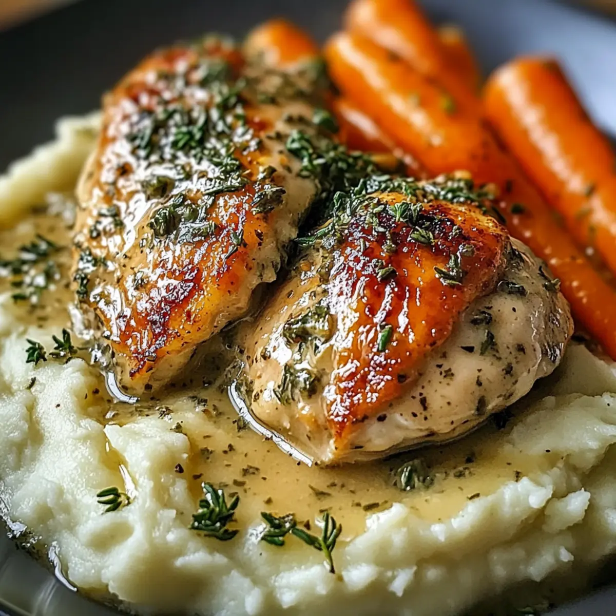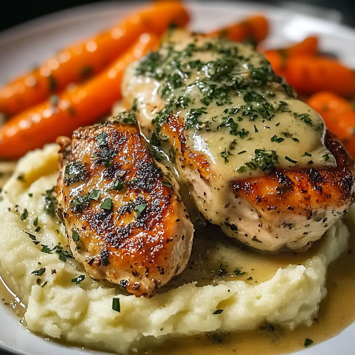 Cremiges Kräuterhühnchen mit Kartoffelpüree für Genuss