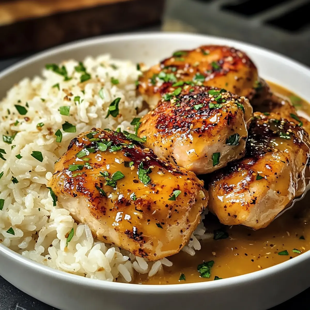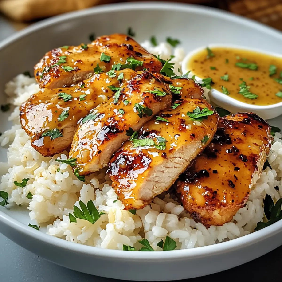 Schnell und einfach: Die Zubereitung dieses Gerichts ist kinderleicht und erfordert nur minimale Kochkenntnisse. Vielseitig: Du kannst verschiedene Hähnchenstücke oder sogar glutenfreie Reisalternativen verwenden. Harmonische Aromen: Die Kombination aus süßem Honig und würzigem Senf sorgt für ein Geschmackserlebnis, das alle begeistert. Familienfreundlich: Perfekt für ein entspanntes Abendessen, das jeder liebt. Ernährungsanpassungen: Ob du Gemüse hinzufügen oder die Glaze anpassen möchtest, die Möglichkeiten sind endlos! Setze deinen kreativen Kochstil um – entdecke auch meine Tipps für saisonale Zutaten für noch mehr Genuss!