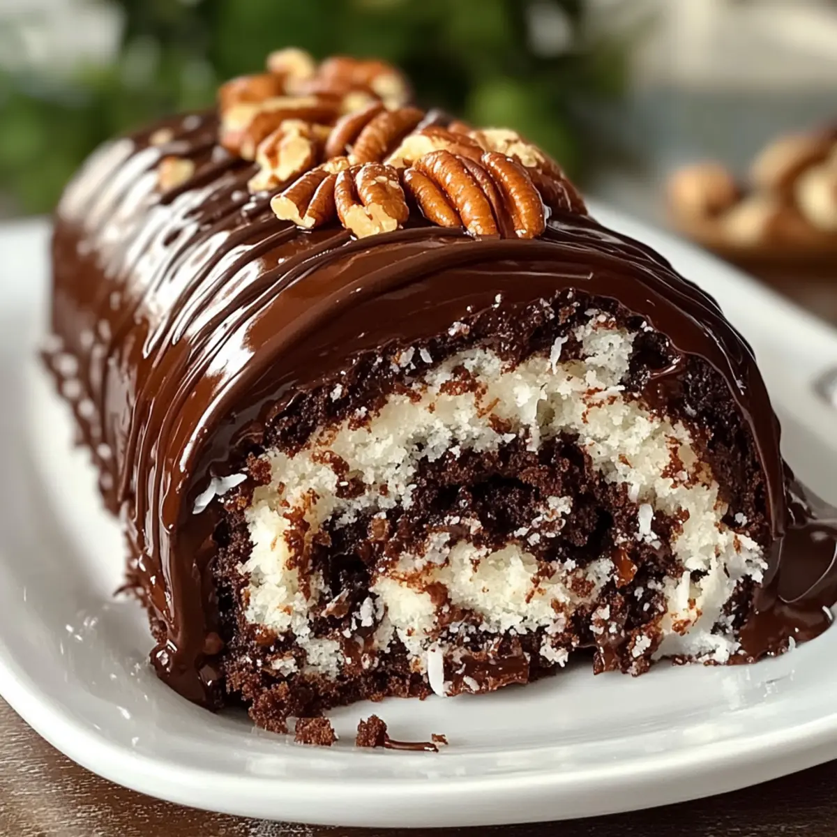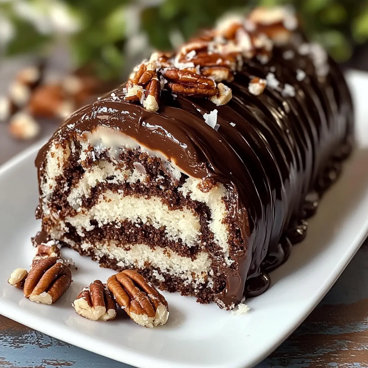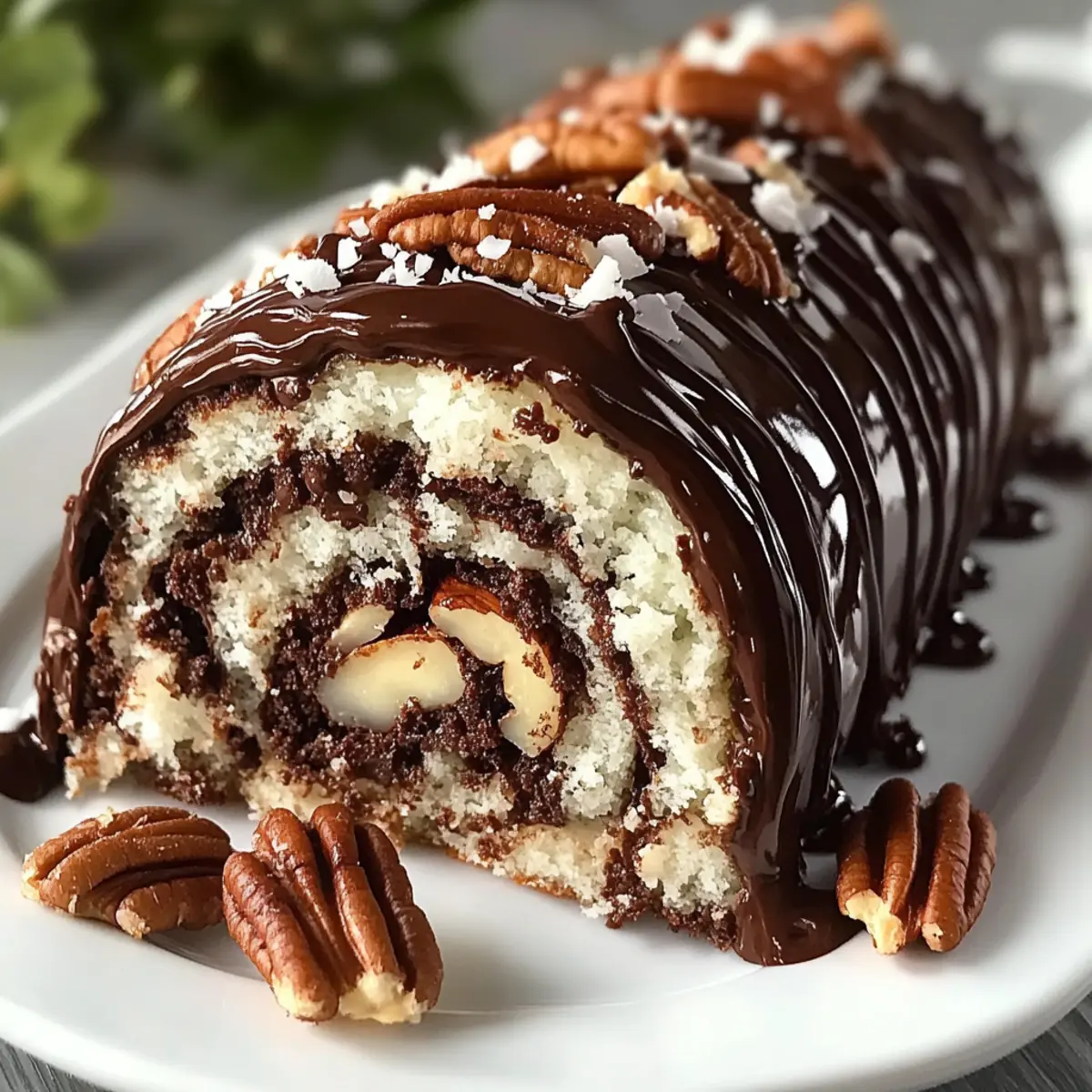 Deutsche Schokoladenkuchenrolle mit Nussvariationen