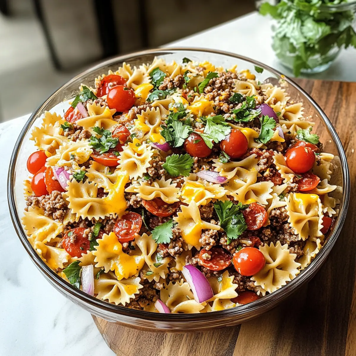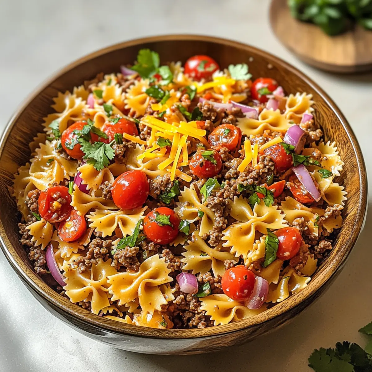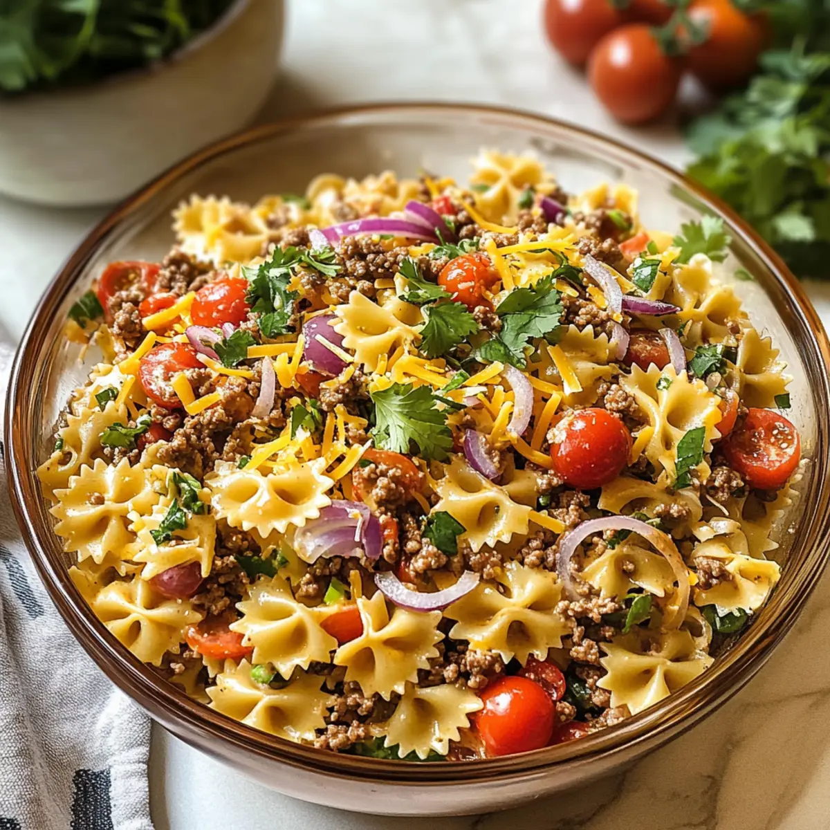 Der Einfache Cowboy-Pasta-Salat ist perfekt für Meal Prep geeignet! Du kannst die Farfalle-Pasta und das Rinderhackfleisch bis zu 24 Stunden im Voraus zubereiten und separat im Kühlschrank aufbewahren, um die Frische zu erhalten. Achte darauf, dass die Pasta vollständig abgekühlt ist, bevor du sie lagerst, um eine matschige Textur zu vermeiden. Das Dressing lässt sich ebenfalls vorbereiten und hält sich bis zu 3 Tage im Kühlschrank. Wenn es Zeit zum Servieren ist, kombiniere einfach die Pasta, das Fleisch, die Bohnen und das Gemüse in einer großen Schüssel, gieße das Dressing darüber und rühre alles gut um. Füge den Käse und den Koriander erst kurz vor dem Servieren hinzu, sodass dein Cowboy-Pasta-Salat frisch und lecker bleibt!