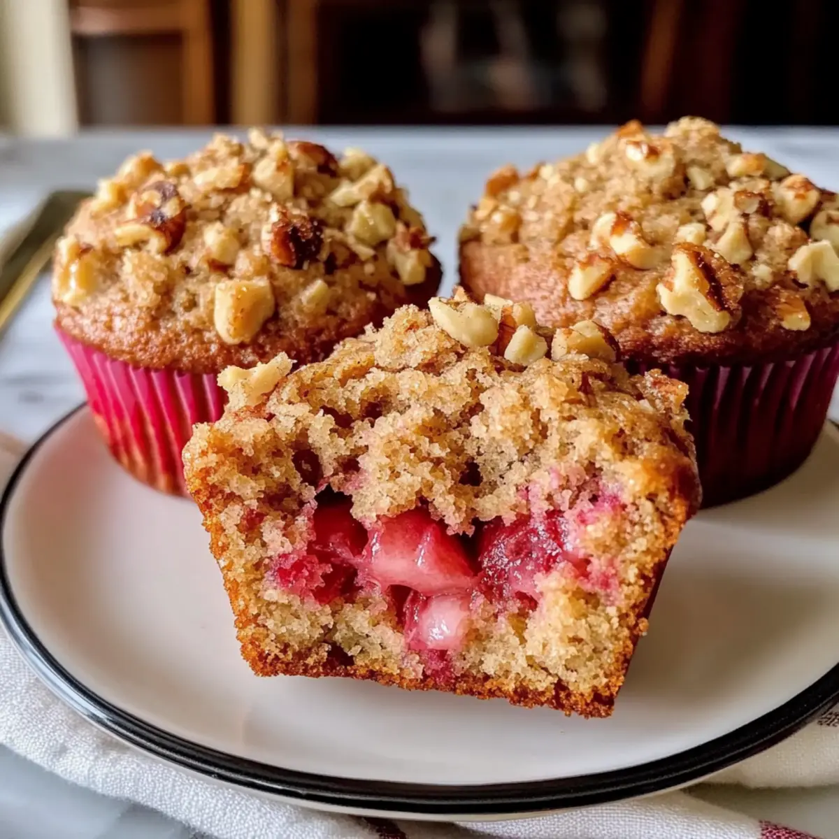 Vielseitigkeit: Du kannst diese Muffins nach deinem Geschmack anpassen, indem du nur Erdbeeren, nur Rhabarber oder sogar die Walnüsse weglässt. Schnelle Zubereitung: Mit einfachen Schritten sind diese Muffins in kürzester Zeit fertig – perfekt für einen hektischen Morgen. Frischer Genuss: Die Mischung aus süßen Erdbeeren und spritzigem Rhabarber sorgt für ein geschmackliches Erlebnis, das das ganze Jahr über begeistert. Knusprige Textur: Das Walnuss-Topping bringt einen wunderbaren Crunch, der jeden Biss veredelt. Portabel: Diese Muffins sind der ideale Snack für unterwegs oder als süßer Frühstücksgenuss. Wenn du mehr über das Backen inspirierender Snacks erfahren möchtest, schau dir auch meine Rezepte für gesunde Muffins an!