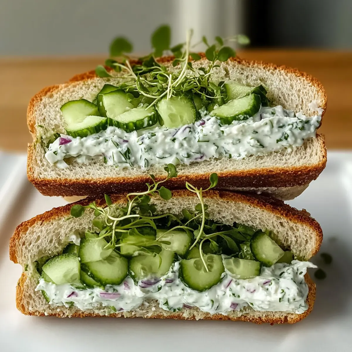 Diese Ergänzung passt wunderbar zu der würzigen Gurkenfüllung und macht die Sandwiches noch schmackhafter. -