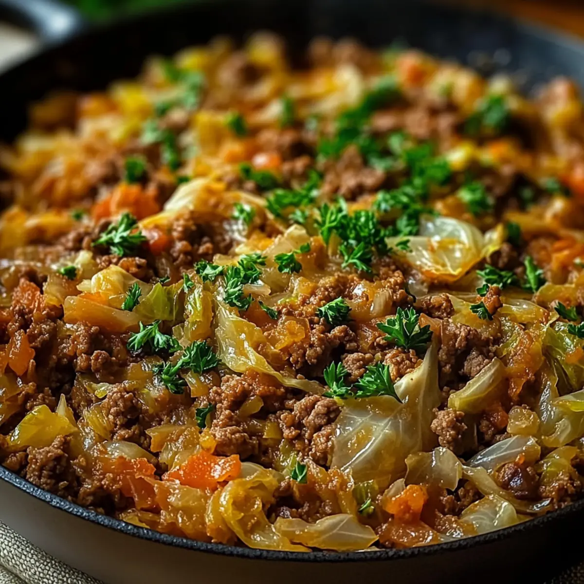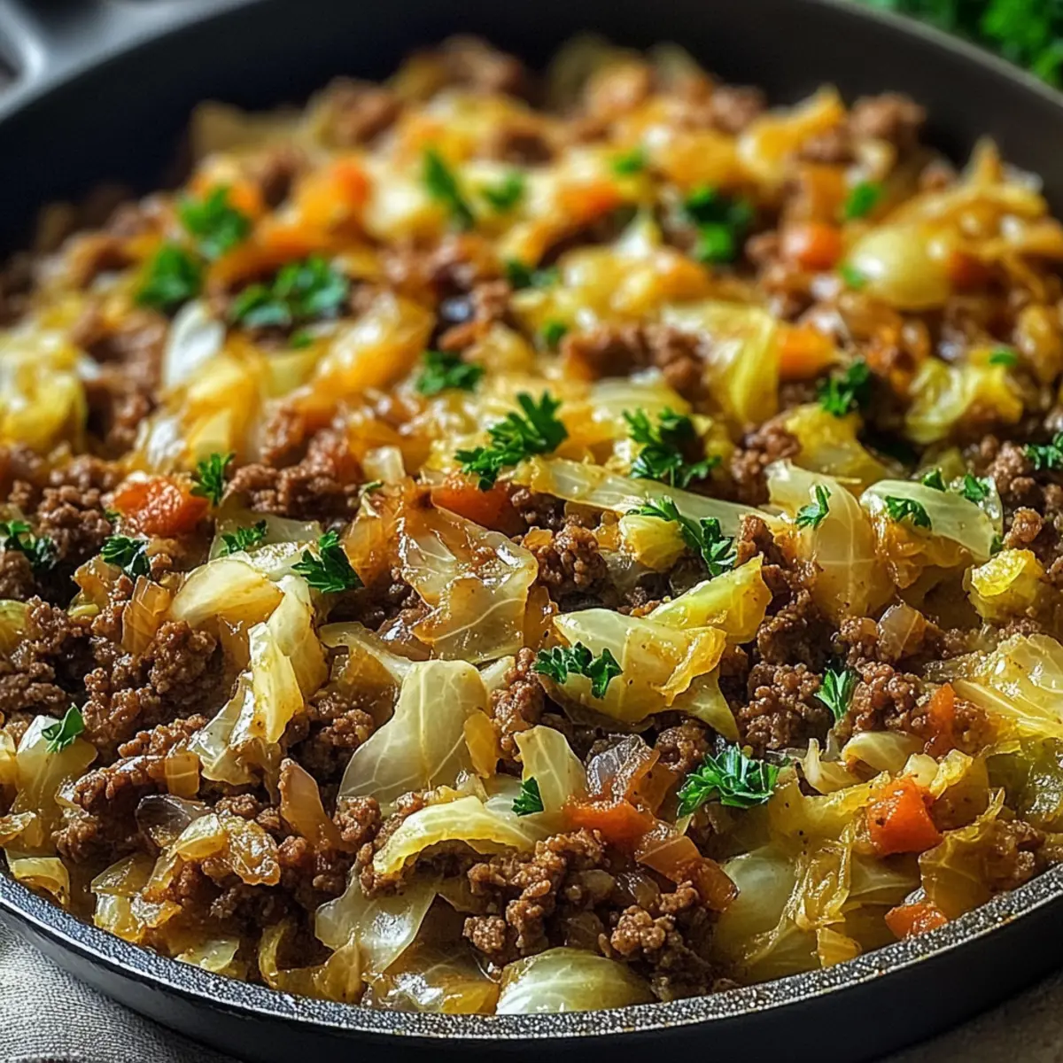- Aromatische Würze: Experimentieren Sie mit zusätzlichen Gewürzen wie Kümmel oder italienischen Kräutern für eine interessante Geschmacksdimension, die Ihr Einfache Herzhaftes Kohl- und Rindfleisch-Pfannengericht aufwertet.