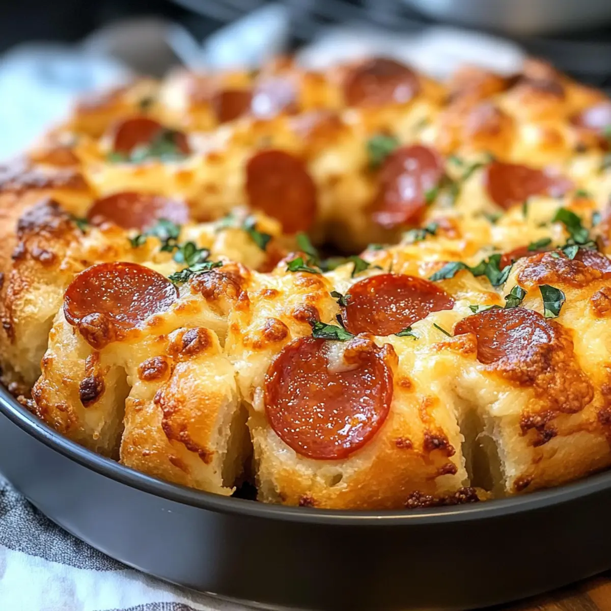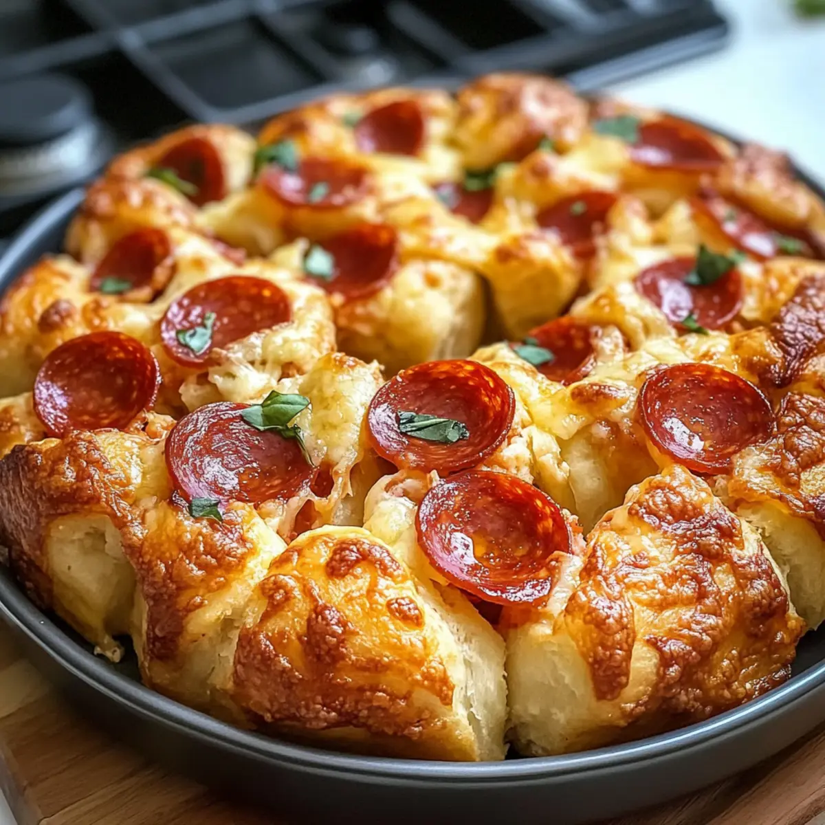 Es gibt Momente in der Küche, die einfach zauberhaft sind – wie der Augenblick, in dem du den Ofen öffnest und das Duftspiel von frisch gebackenem Brot und geschmolzenem Käse überrascht dich. Heute teile ich mit dir mein Rezept für das einfache Zieh-apart-Pizza-Monkey-Brot, das perfekt für gesellige Abende geeignet ist. Mit seinen flauschigen Schichten aus Pizzateig, köstlichem Käse und würzigem Pepperoni begeistert es nicht nur deinen Gaumen, sondern bringt auch jeden zum Staunen, wenn man die einzelnen Stücke auseinanderzieht. Die Zubereitung ist schnell und unkompliziert, was dieses Rezept zu einem echten Hit macht, ob bei einer Feier oder einfach nur als gemütlicher Snack zu Hause. Bist du bereit, diese kulinarische Überraschung zu entdecken?