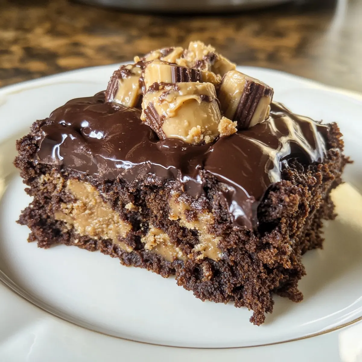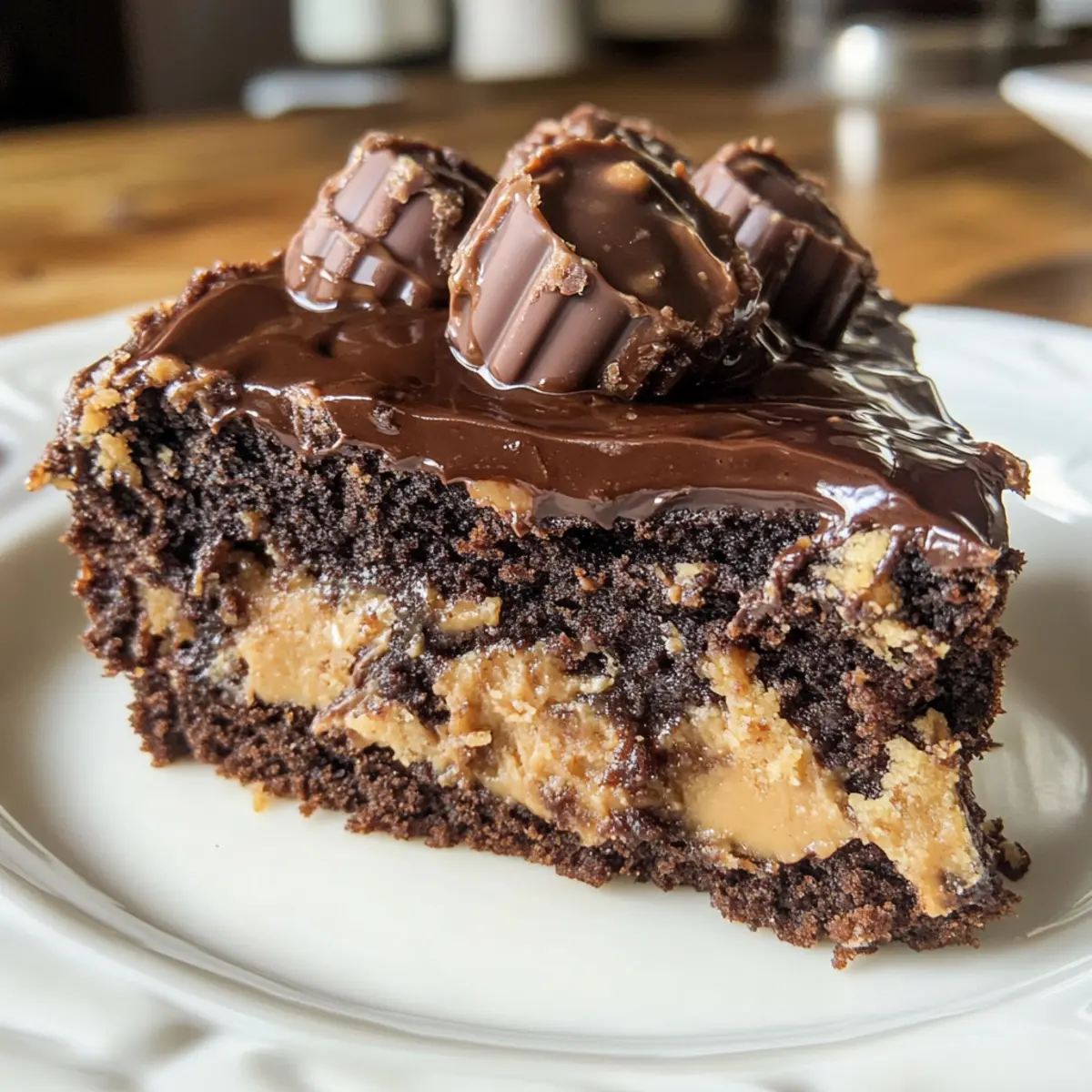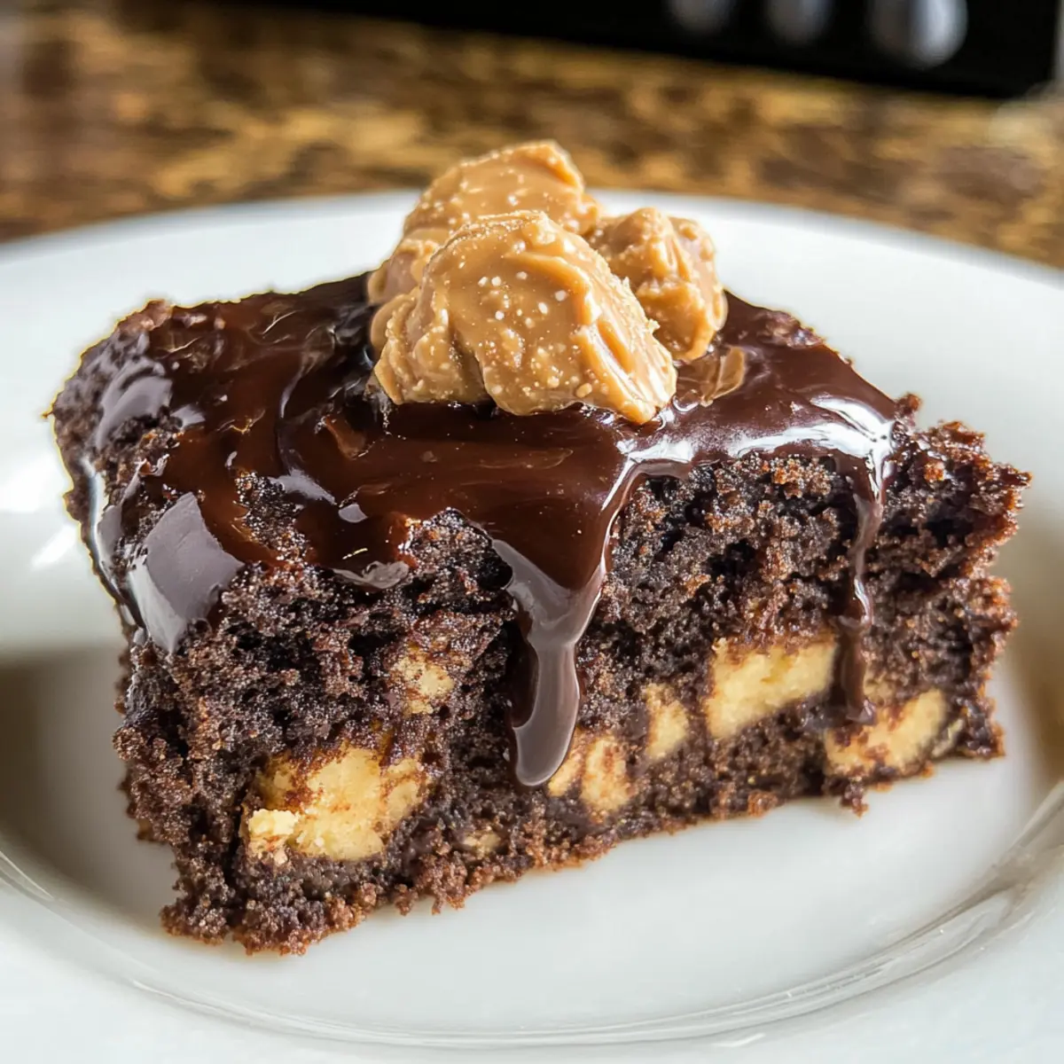 Unwiderstehlicher Geschmack: Die Kombination aus schokoladigem Kuchen und geschmolzenen Erdnussbutterbechern sorgt für einen reichhaltigen Genuss, der jeden Biss zum Erlebnis macht.