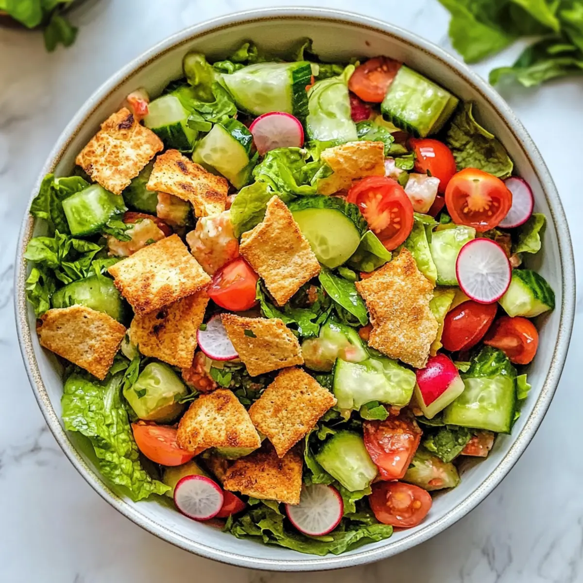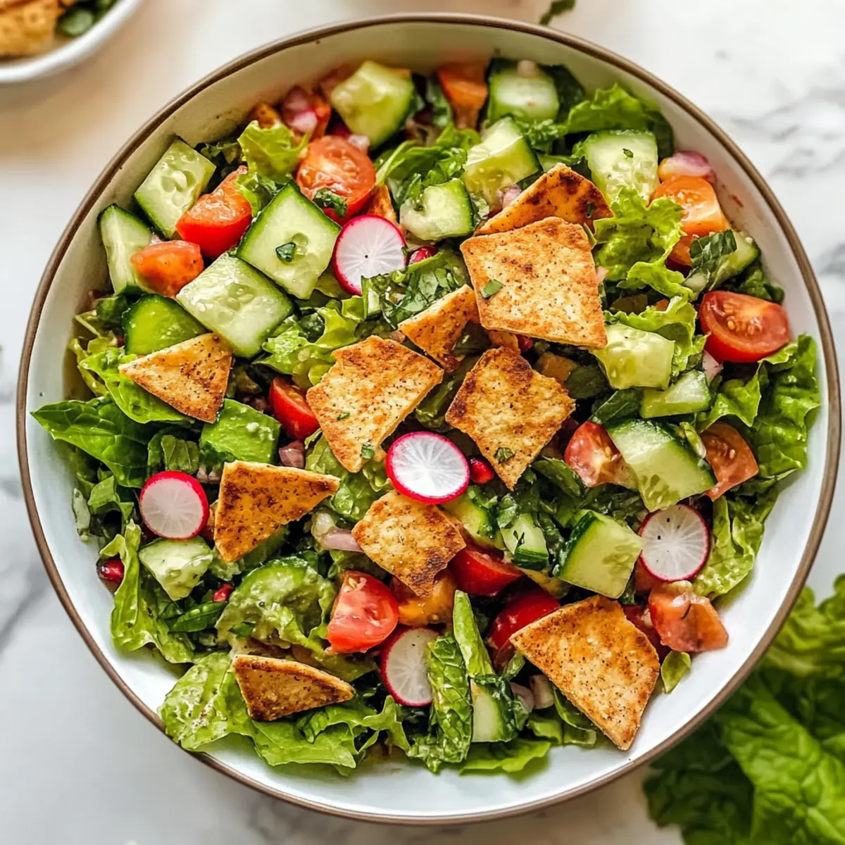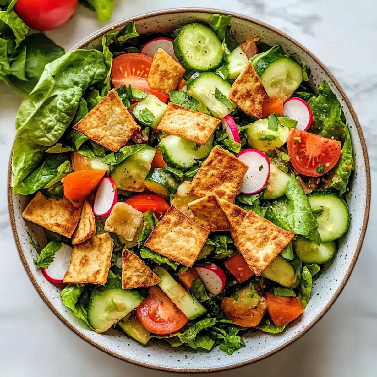 Fühle die Frische und den Geschmack des Fattoush-Salats mit seinen vielfältigen Zutaten!