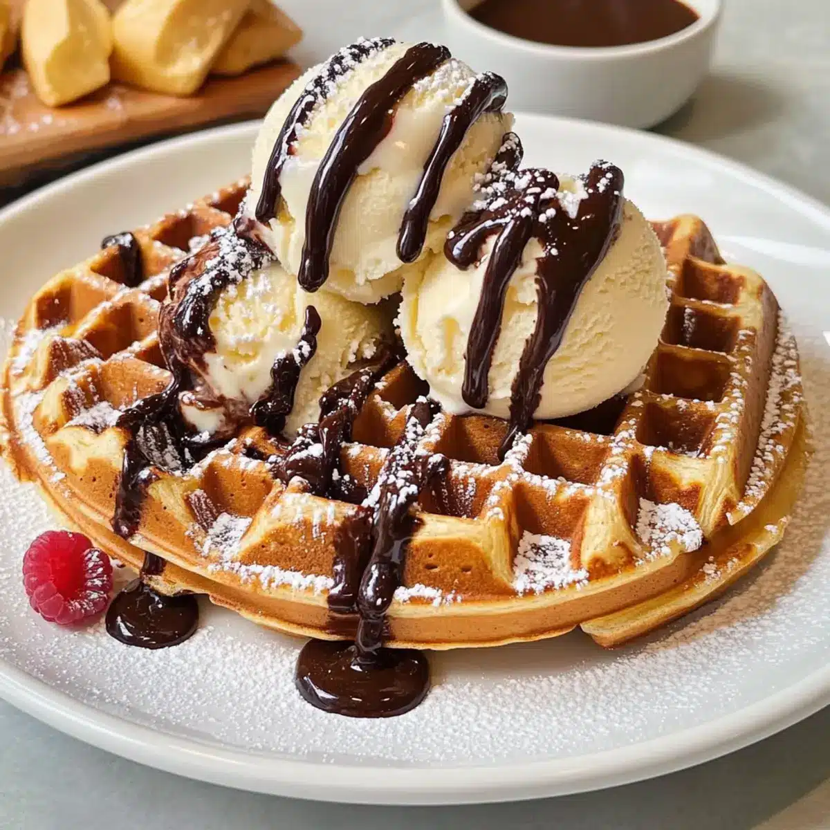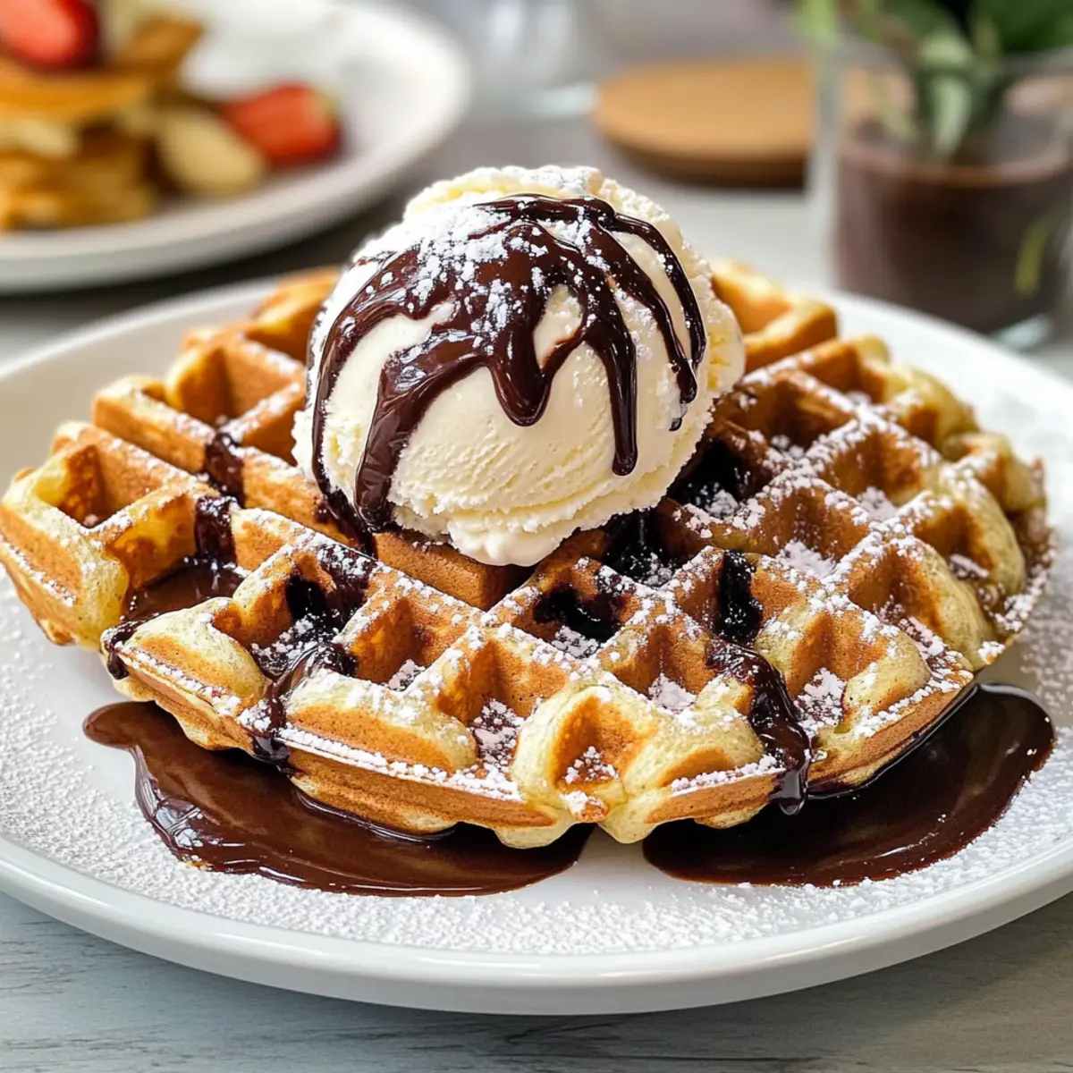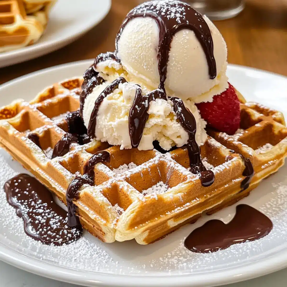 - Eiscreme: Verwöhne dich mit einer Kugel Vanille- oder Schokoladeneis, das der Wärme der Waffeln einen aufregenden Kontrast bietet. Ein echter Blickfang für jede Dessert-Tafel!