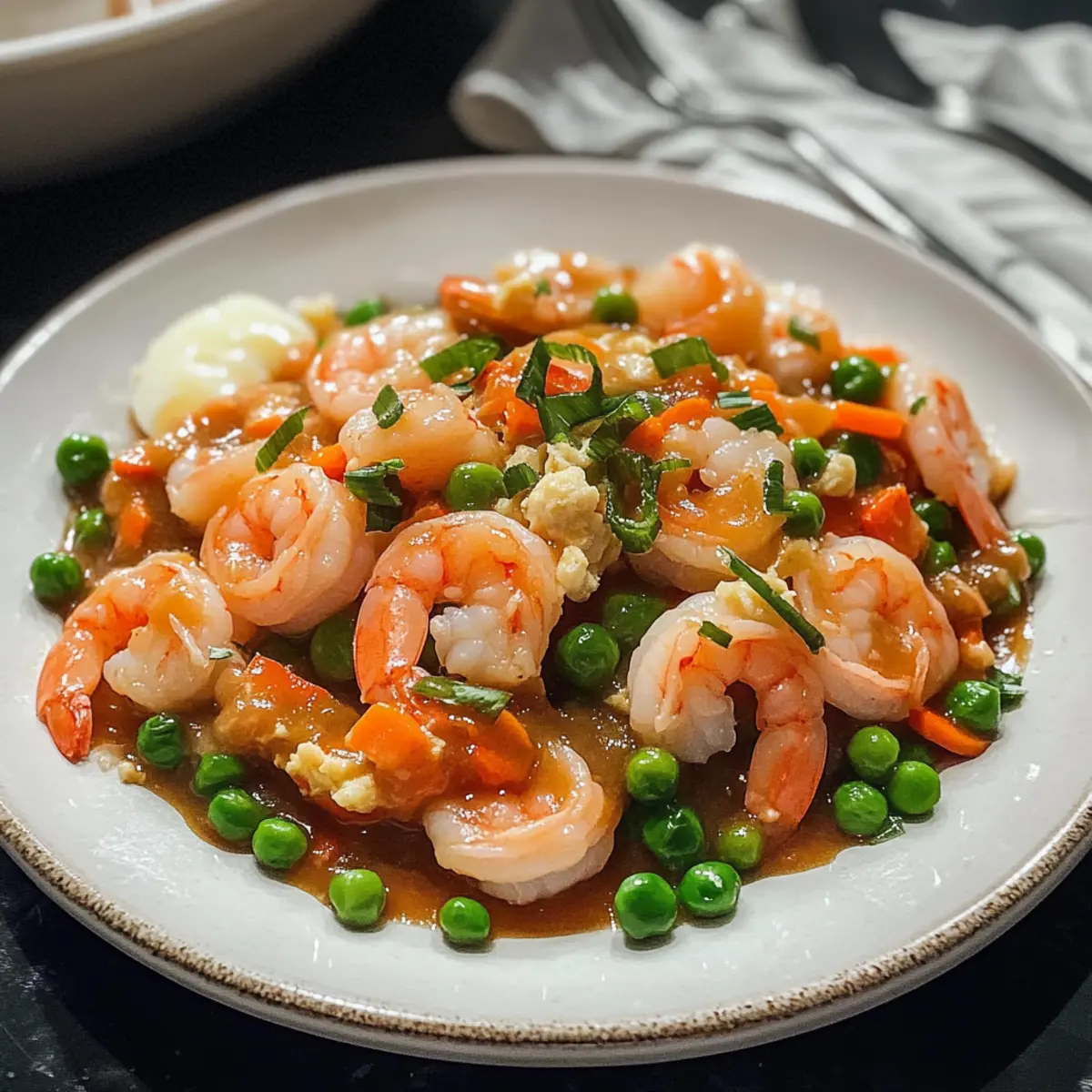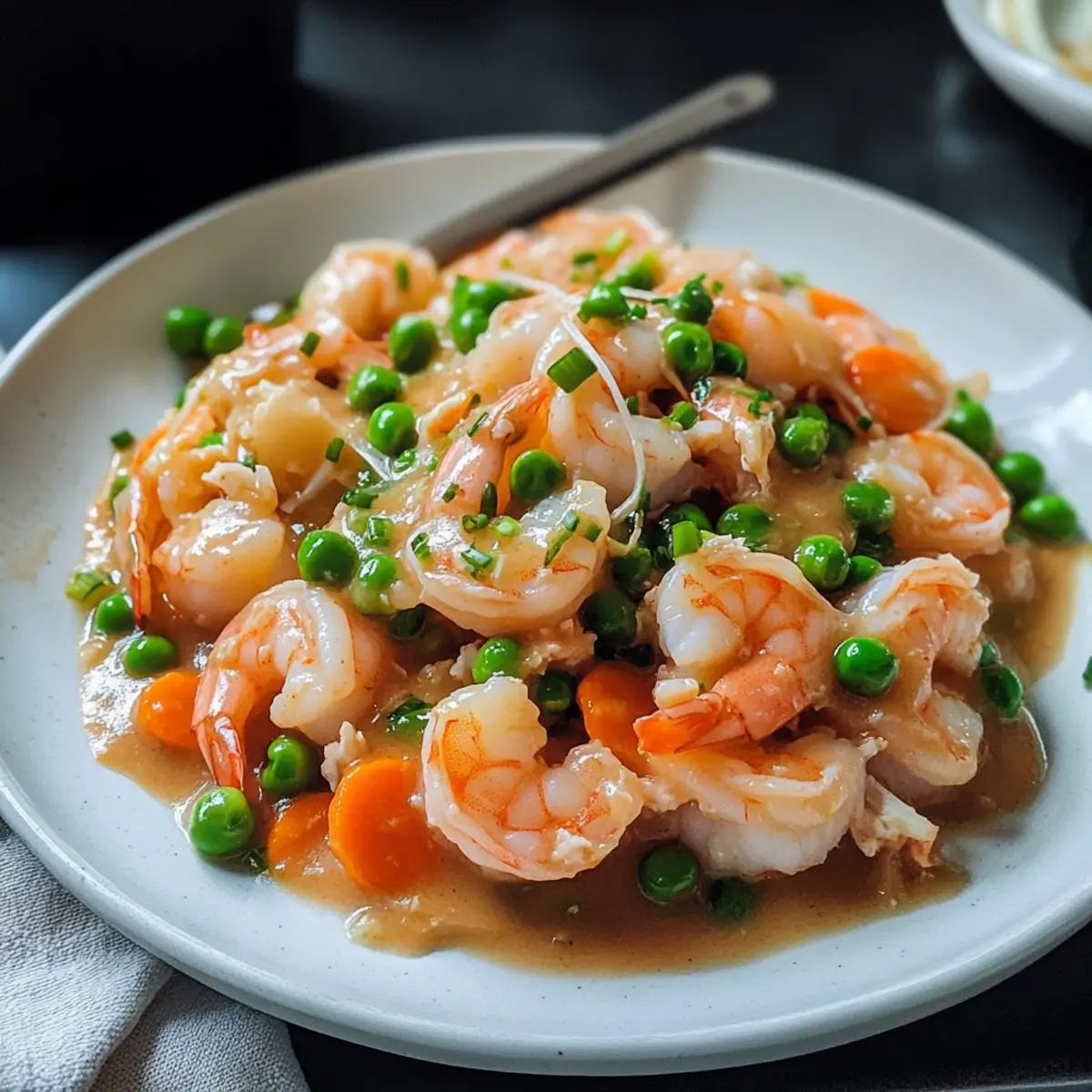 Gib die vorgebratenen Garnelen zurück in den Topf und füge die Maisstärkemischung hinzu. Lasse die Mischung für 2-3 Minuten köcheln, bis die Sauce eindickt und die Garnelen gut umhüllt sind. Sie sollte dick genug sein, um einen Löffel zu beschichten.