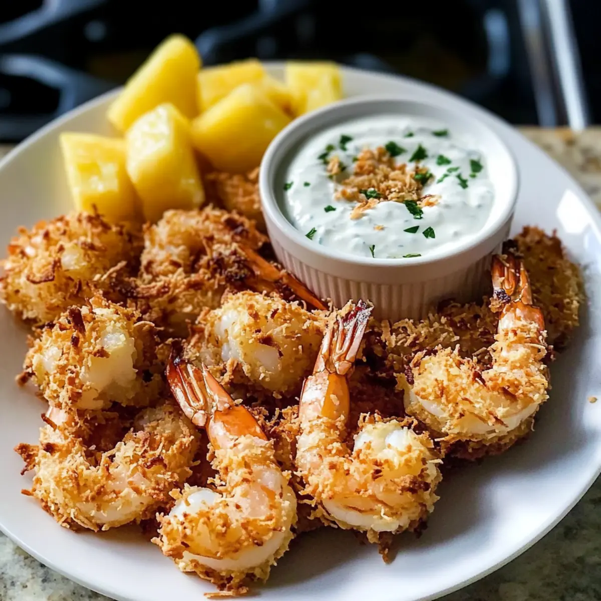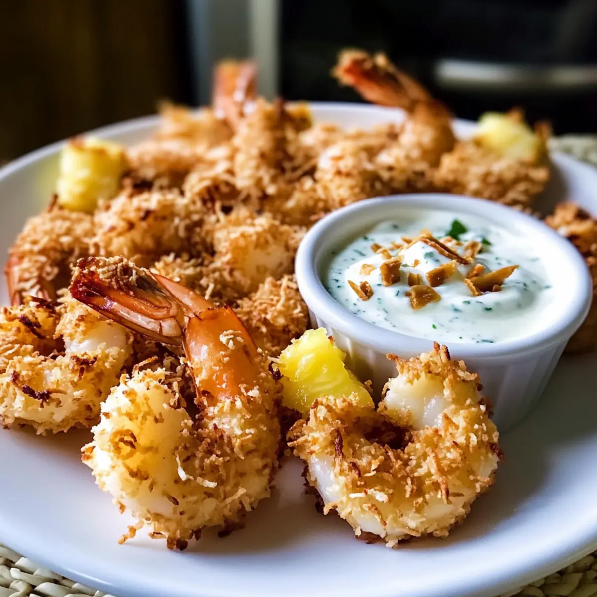 Frische Zutaten: Verwenden Sie frische Ananas für die Dipsauce, um den besten tropischen Geschmack zu erzielen. Dies hebt die Aromen der gebackenen Kokosnussgarnelen noch stärker hervor.