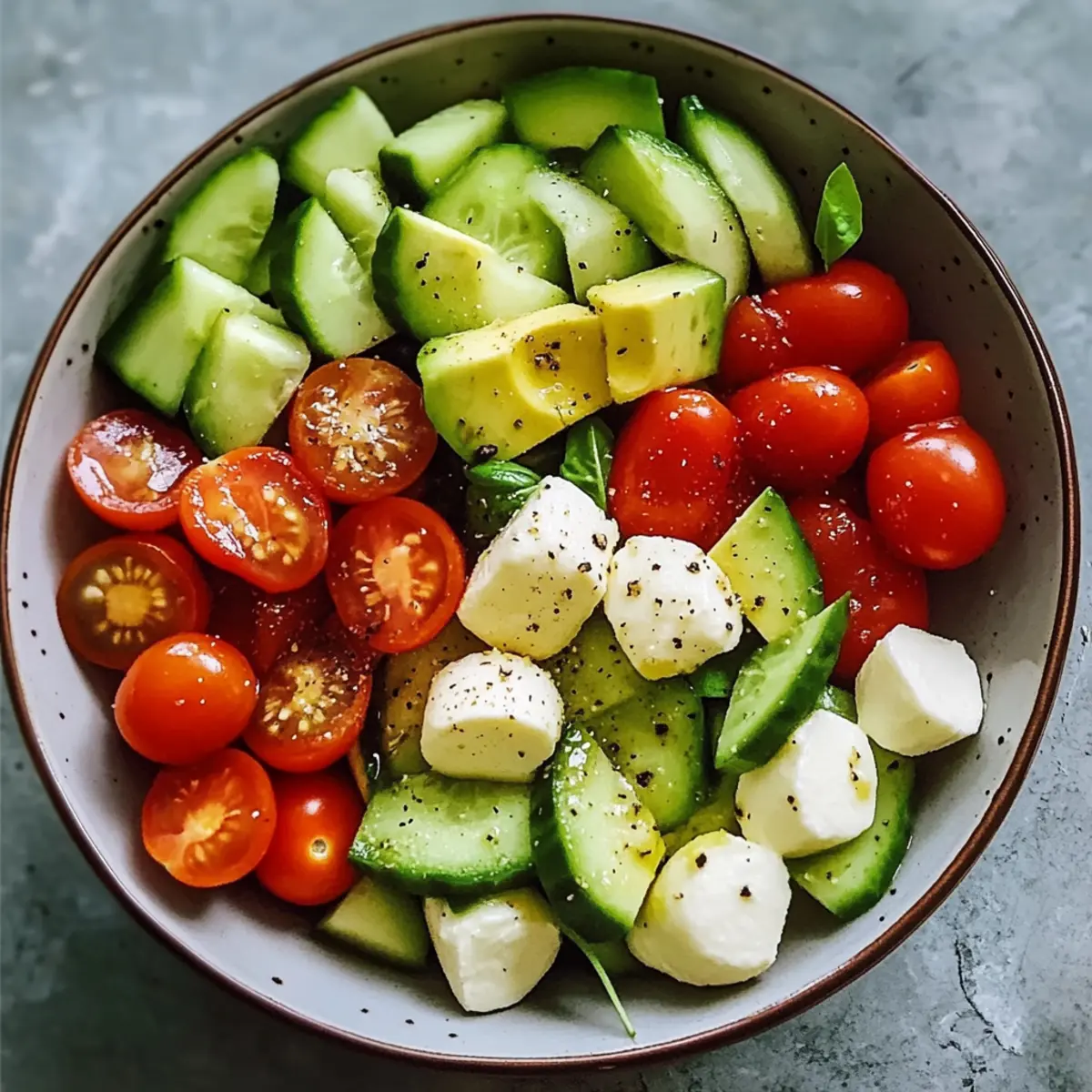 Frische, die begeistert: Der Gurken-Mozzarella-Salat mit Avocado ist nicht nur ein Hingucker, sondern auch eine Geschmacksexplosion, die gesund und leicht ist.