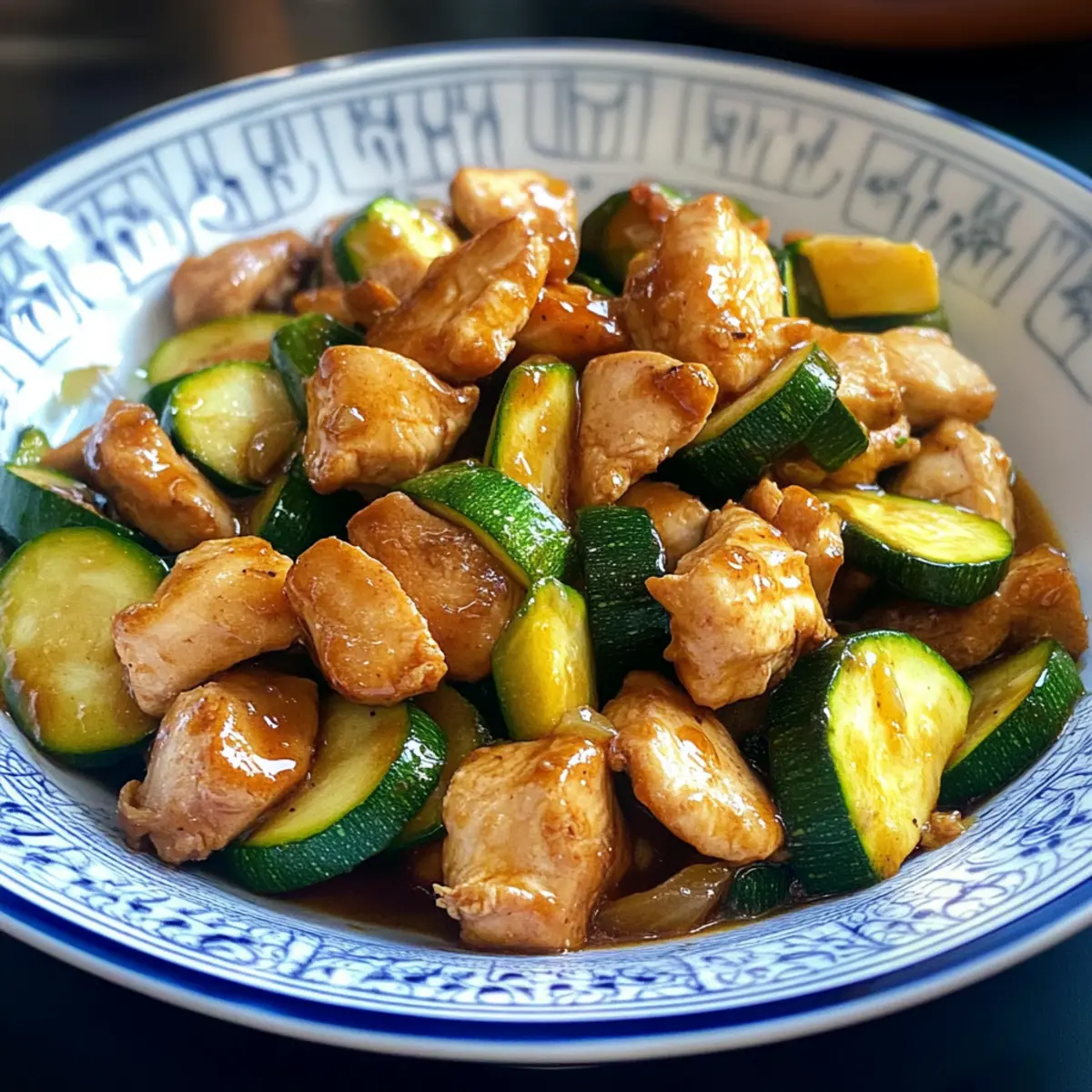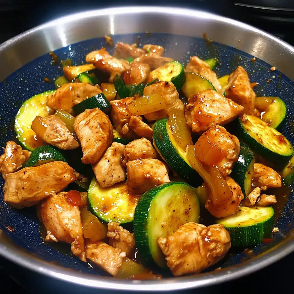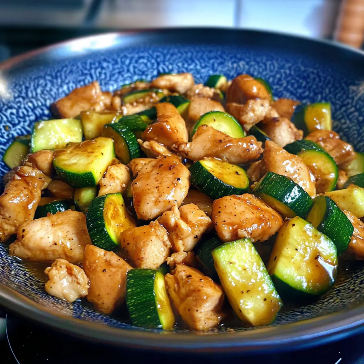 - Servieren Sie die Hähnchen-Zucchini-Pfanne sofort über Reis oder Nudeln.