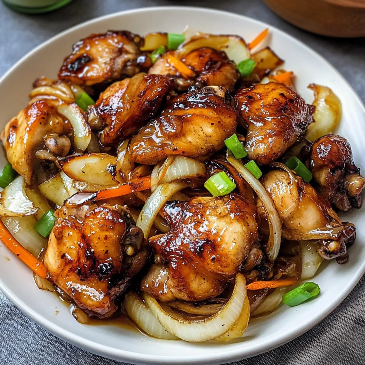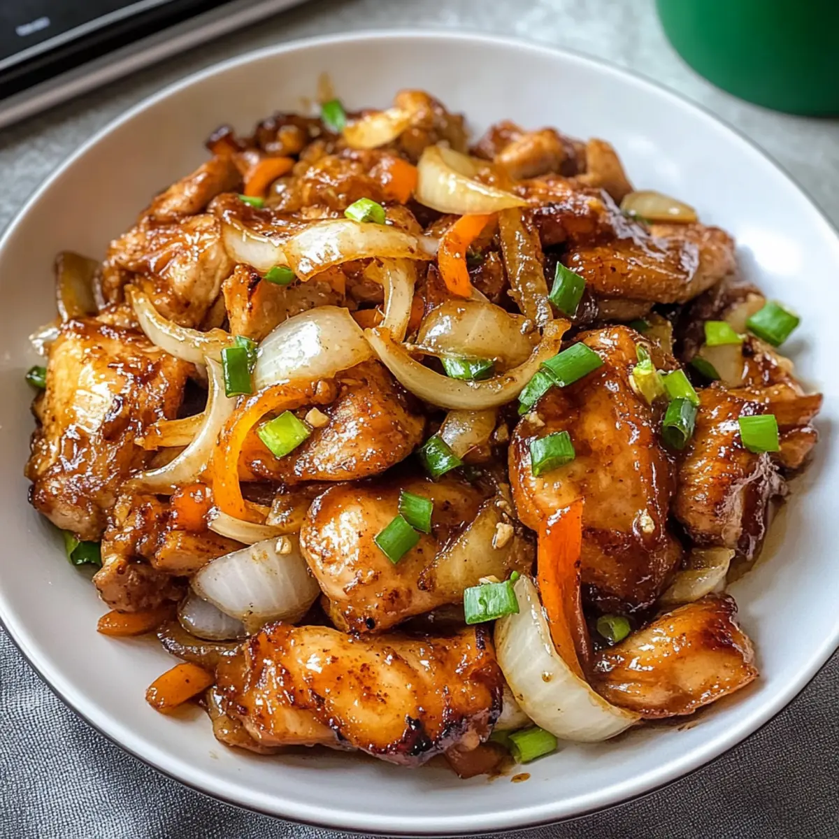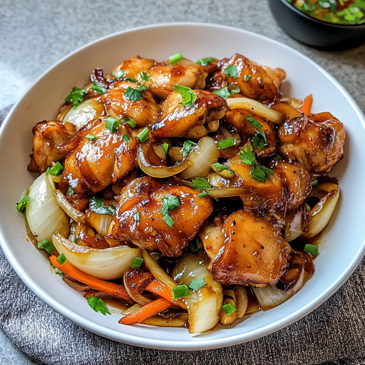 Reichhaltiger Geschmack: Die Kombination aus zartem Hähnchen, süßen Zwiebeln und aromatischem Reiswein ergibt ein Geschmacksfeuerwerk, das jeden Gaumen erfreut.