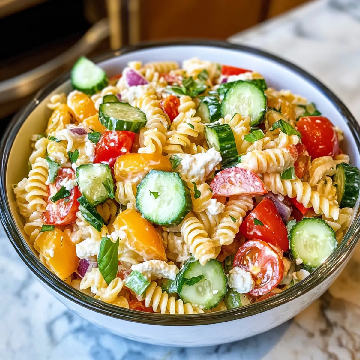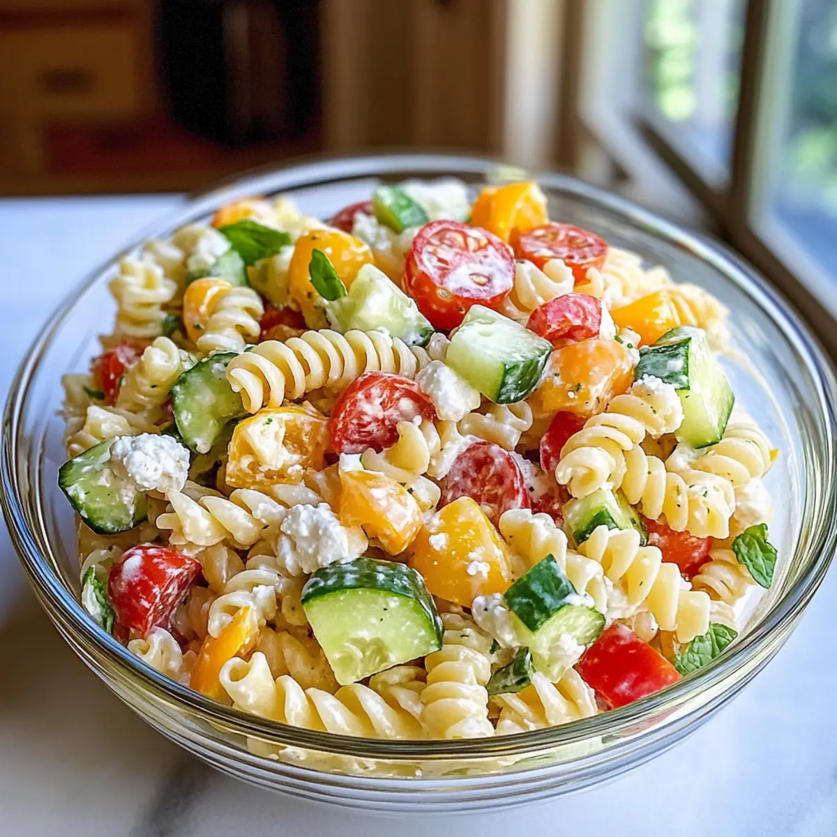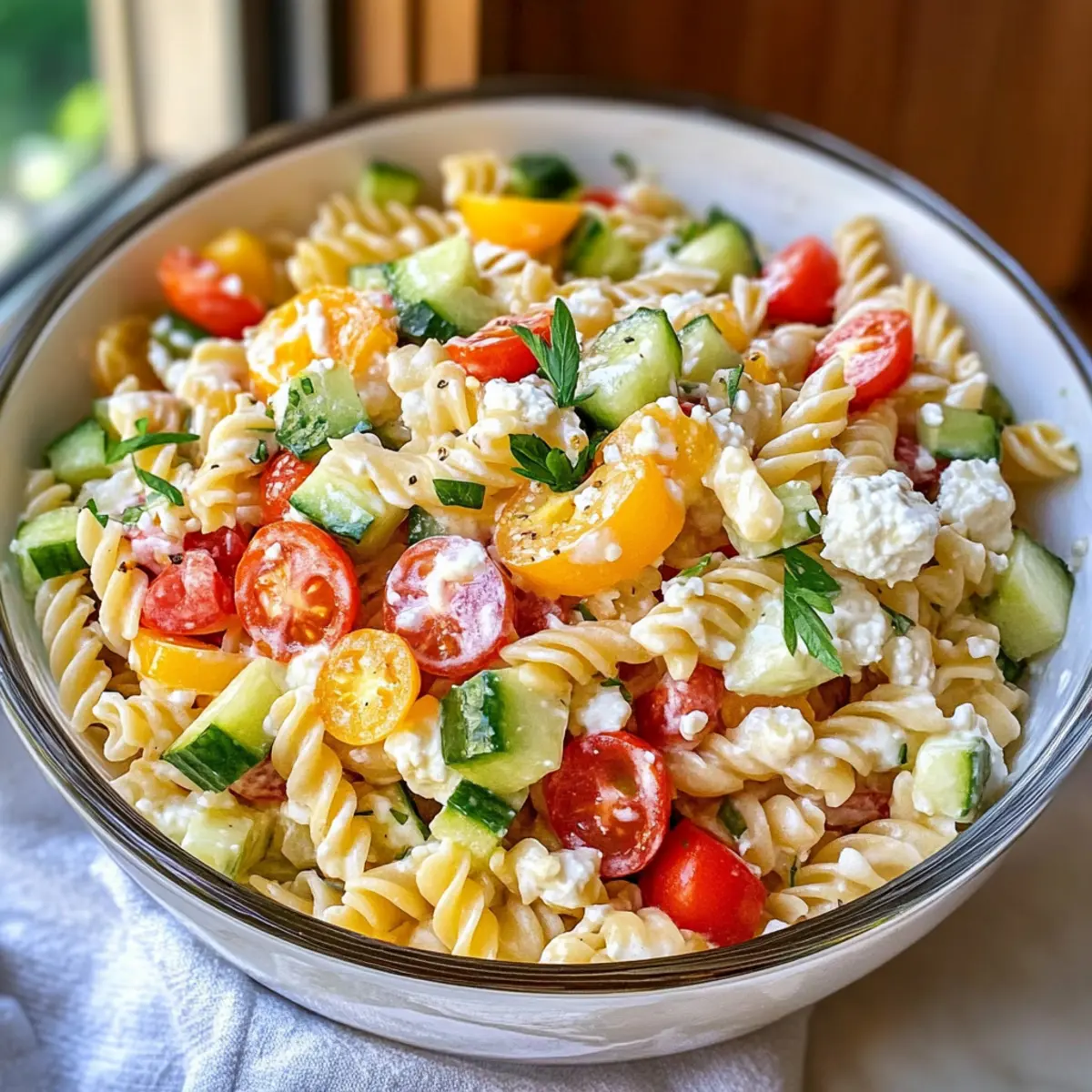 Hoher Protein Quarknudelsalat für schnelles Kochen