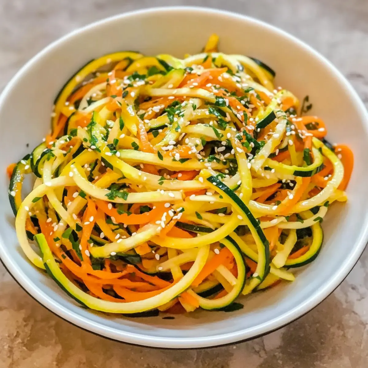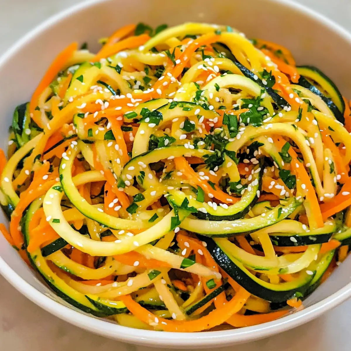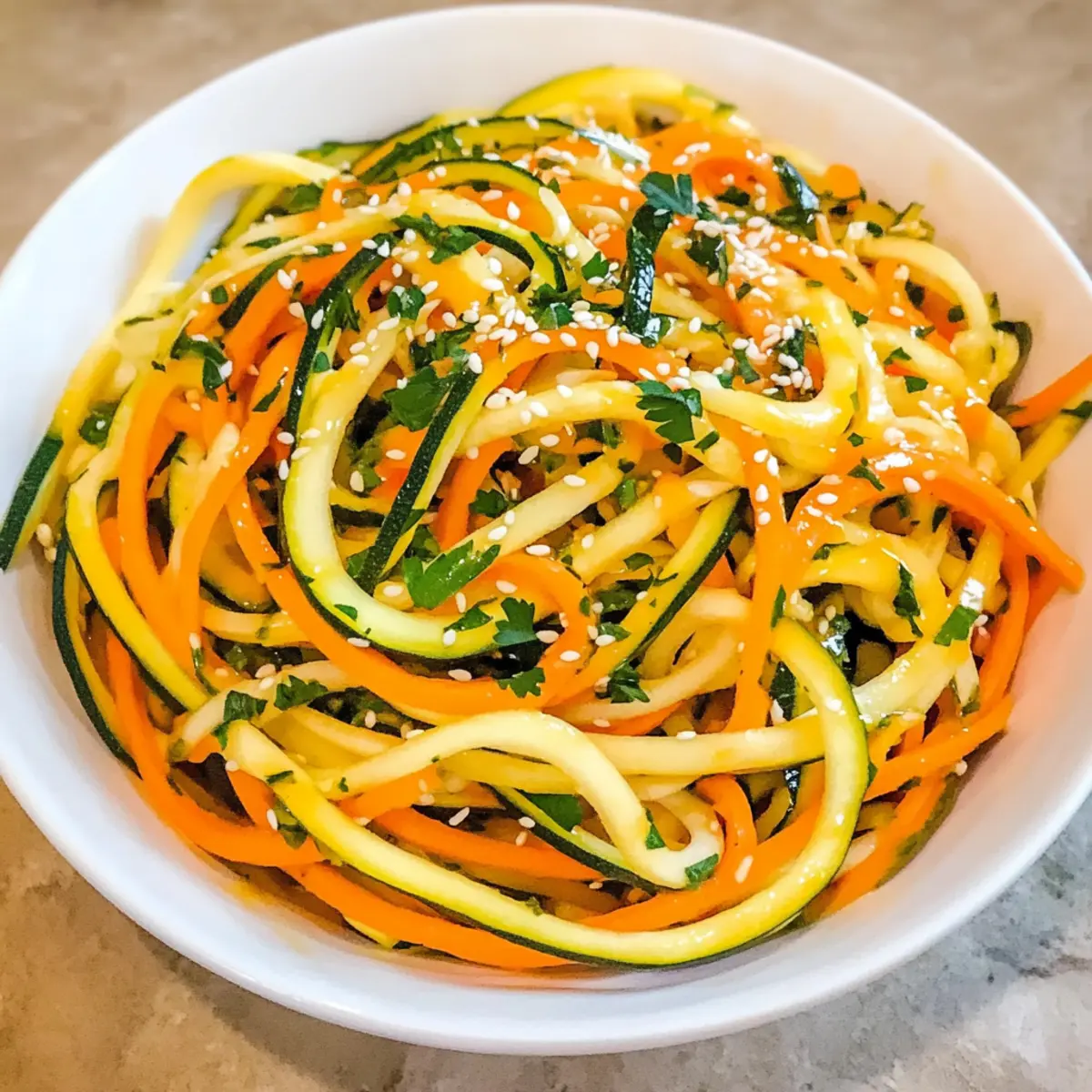Karotten Zucchini Salat mit Sesam Ingwer für Erfrischung