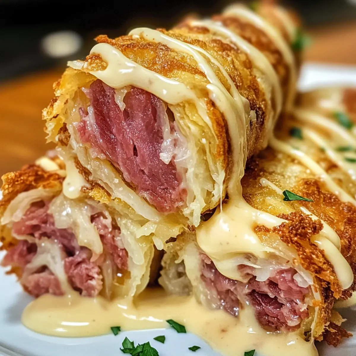 Keto knusprige Reuben Roll-Ups Variationen