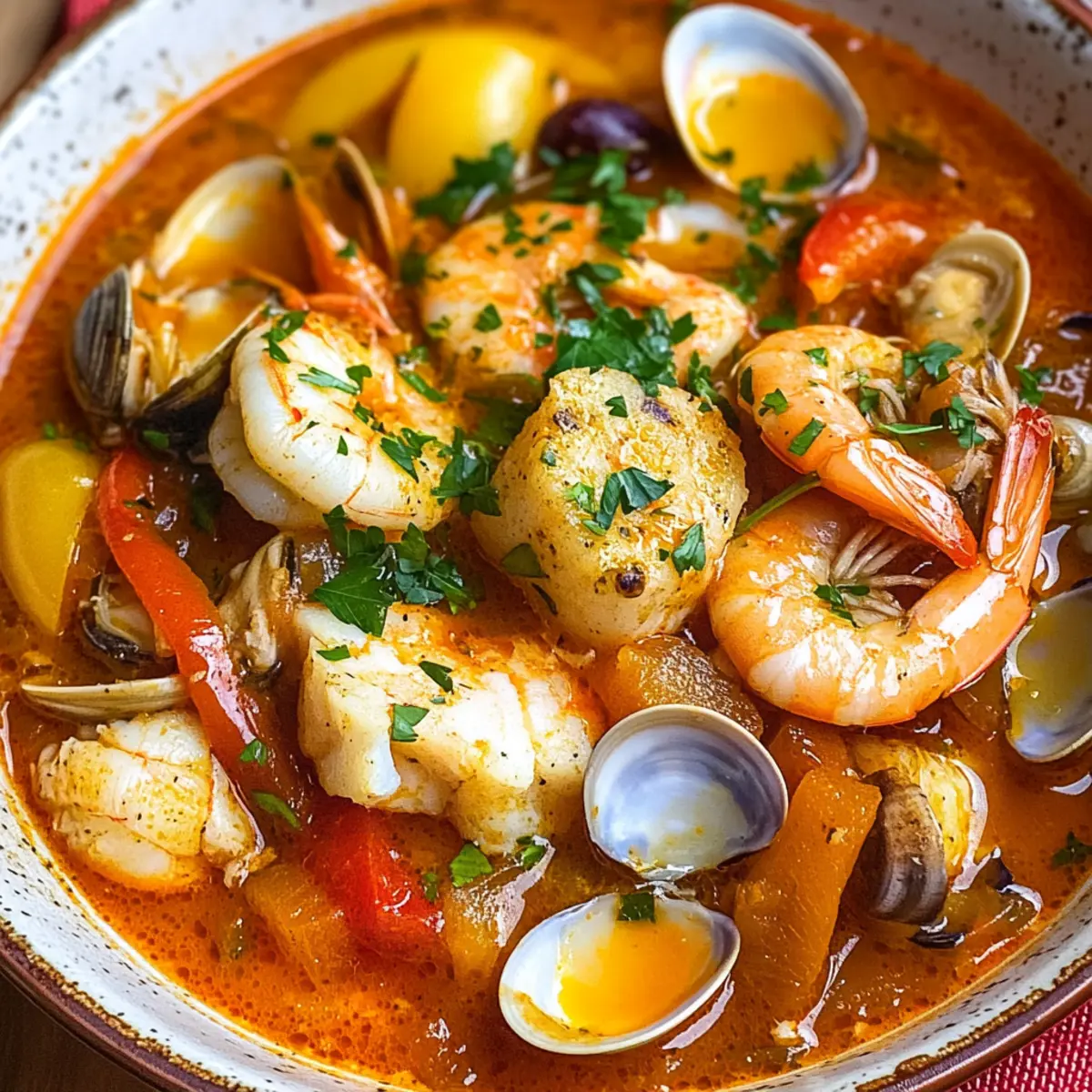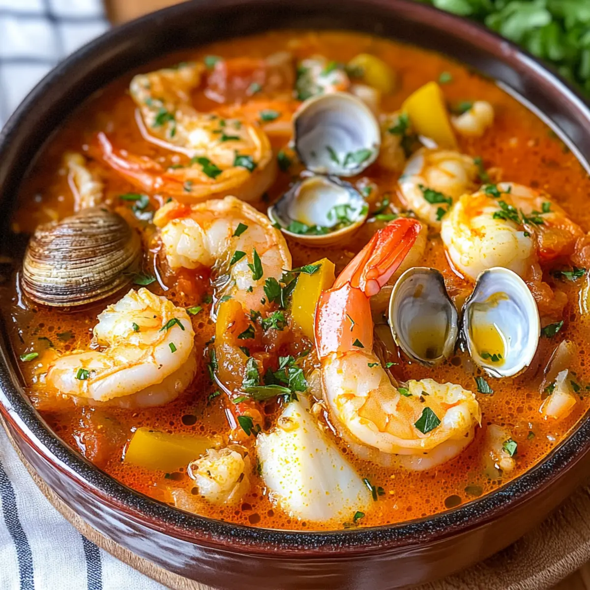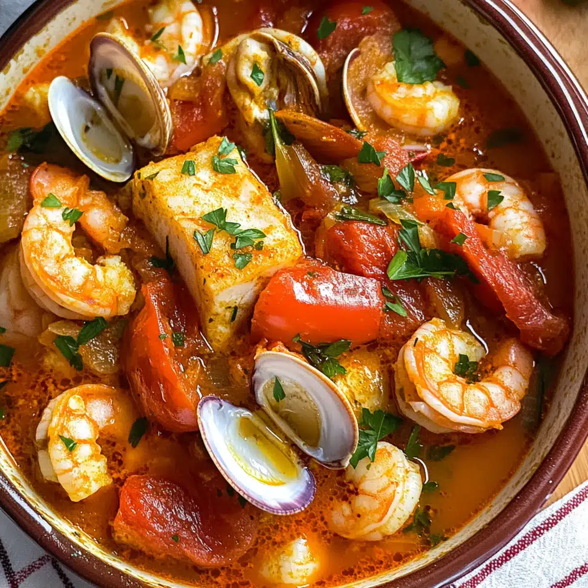 - Vegetarisch: Lasse die Meeresfrüchte weg und füge Kichererbsen oder extra Gemüse hinzu, um einen herzhaften Eintopf zu kreieren.