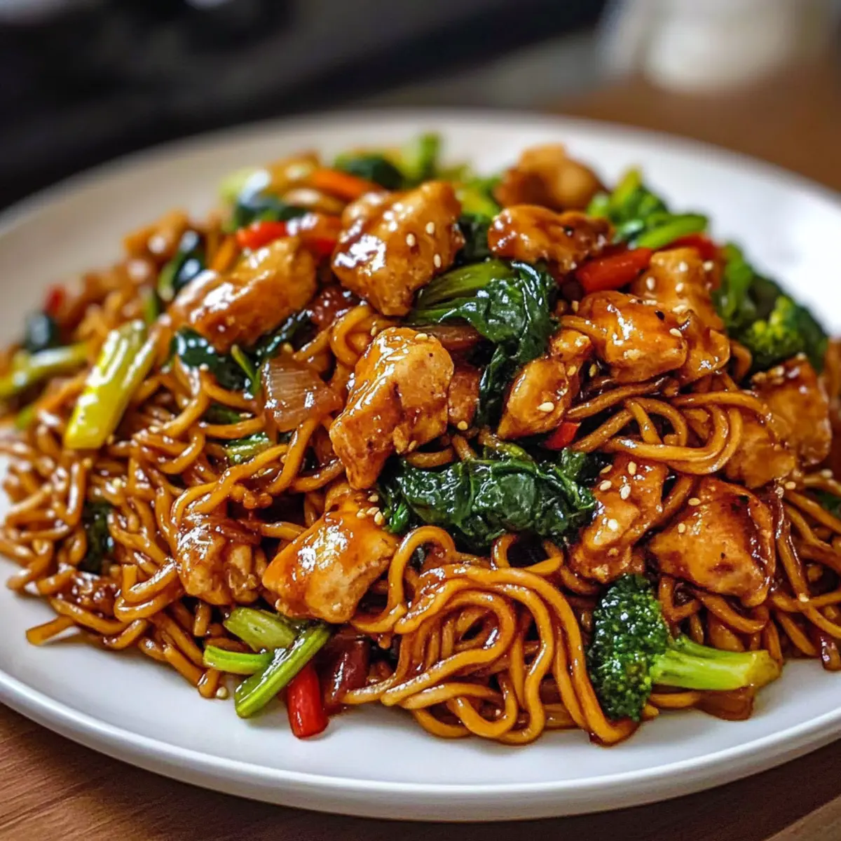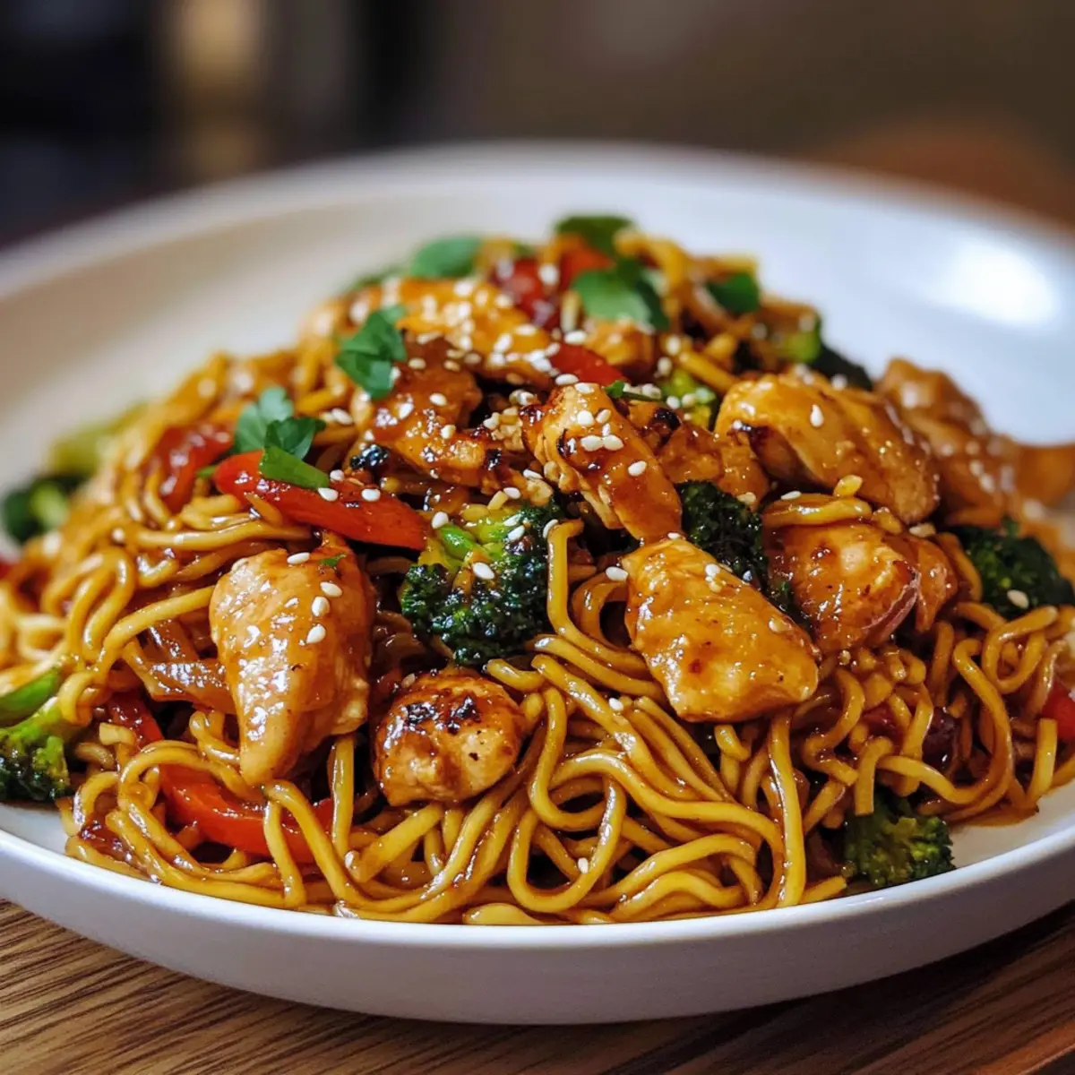 Klebrige Knoblauchhühnchen-Nudeln in 30 Minuten