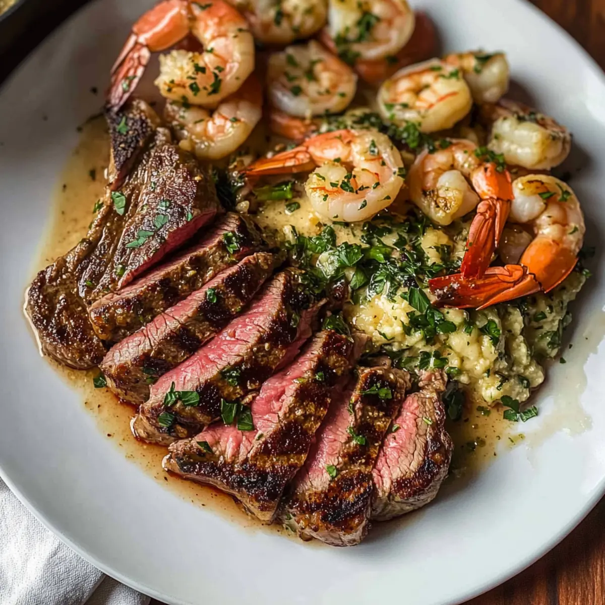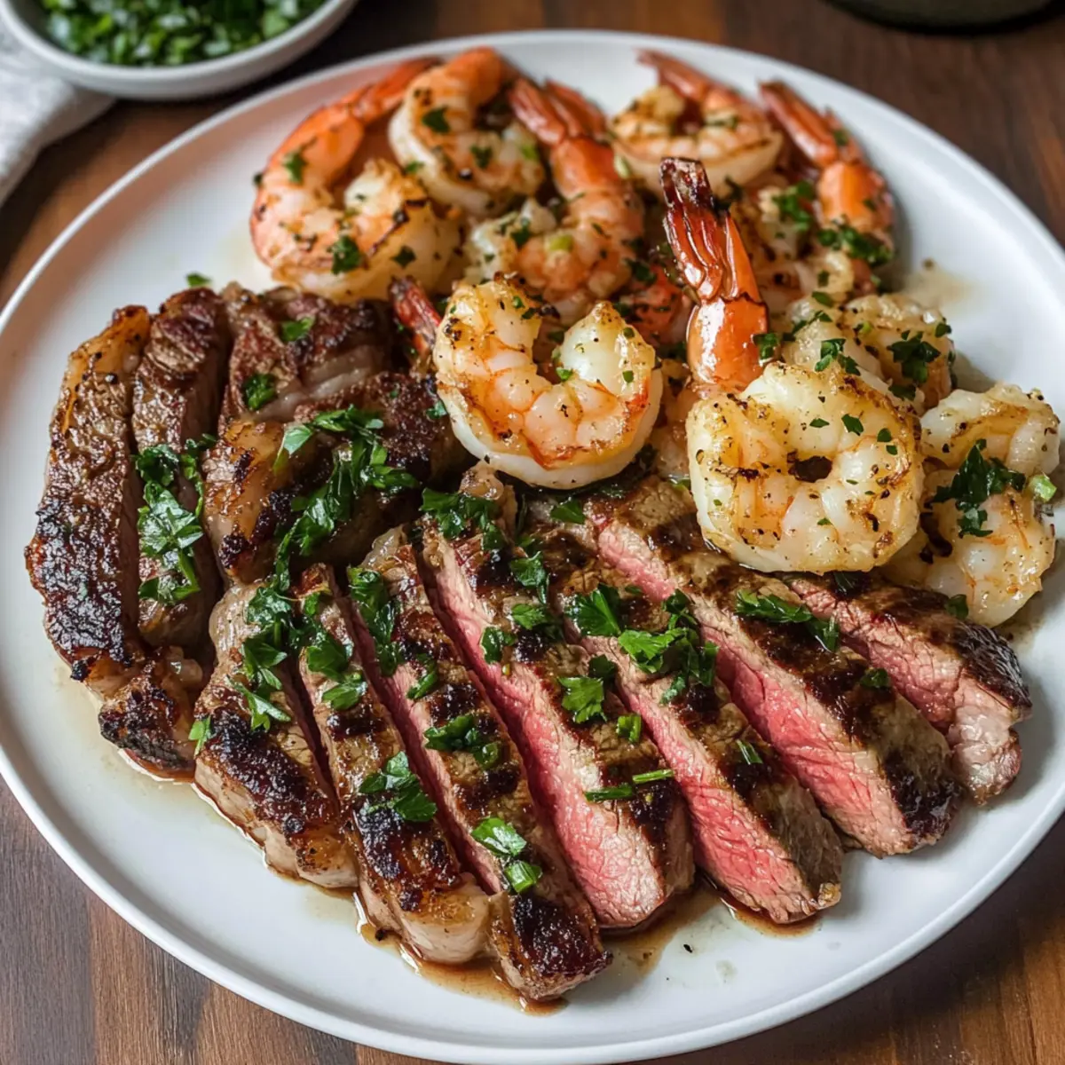 Gewürzdramaturgie: Experimentiere mit Gewürzen wie geräuchertem Paprika oder Kreuzkümmel, um dem Steak und den Garnelen eine besondere Note zu verleihen.