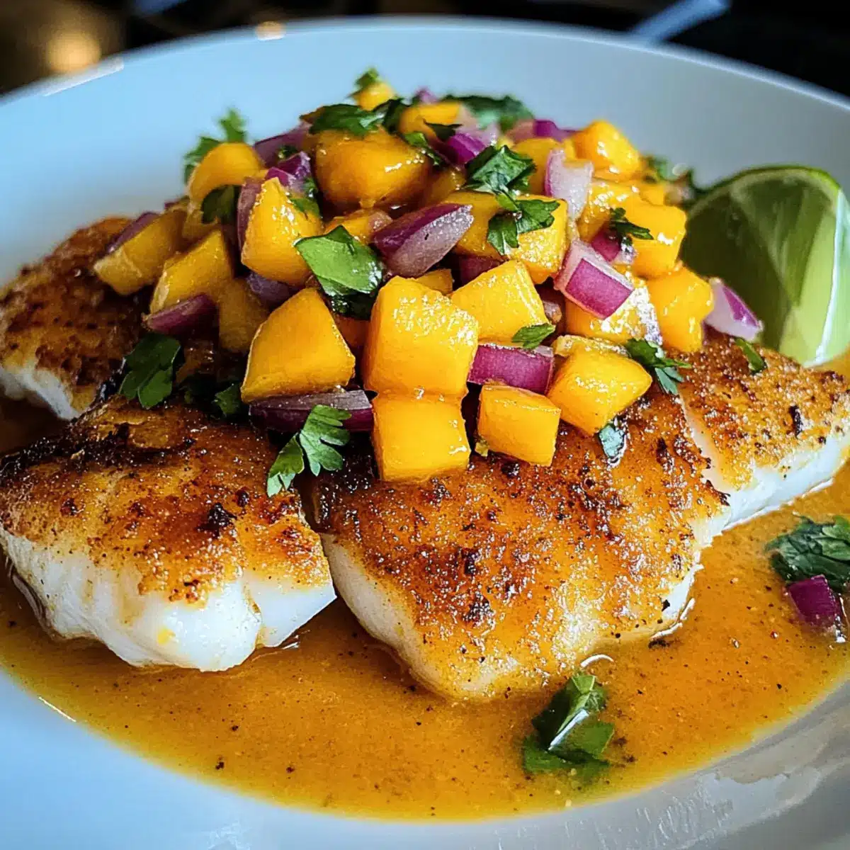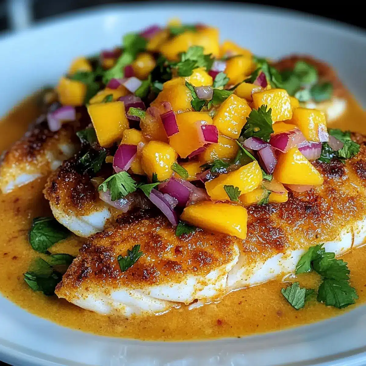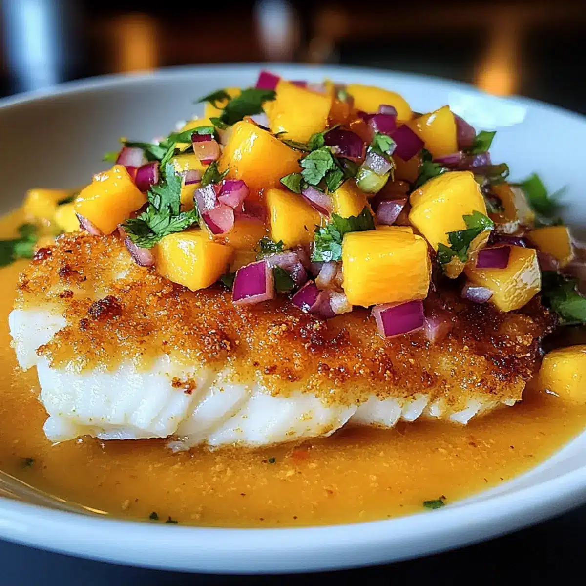 Knuspriger Kokosnuss-Curry-Fisch mit Mango-Salsa