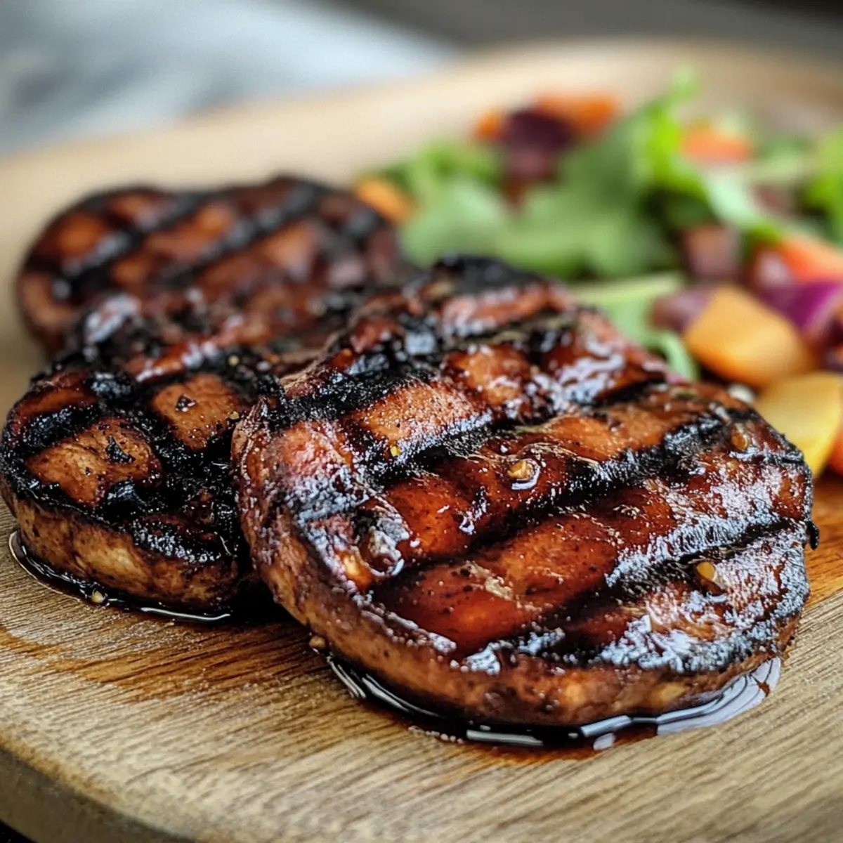 - Bepinseln Sie die Steaks mit BBQ-Sauce und lassen Sie sie 1–2 Minuten auf dem Grill.