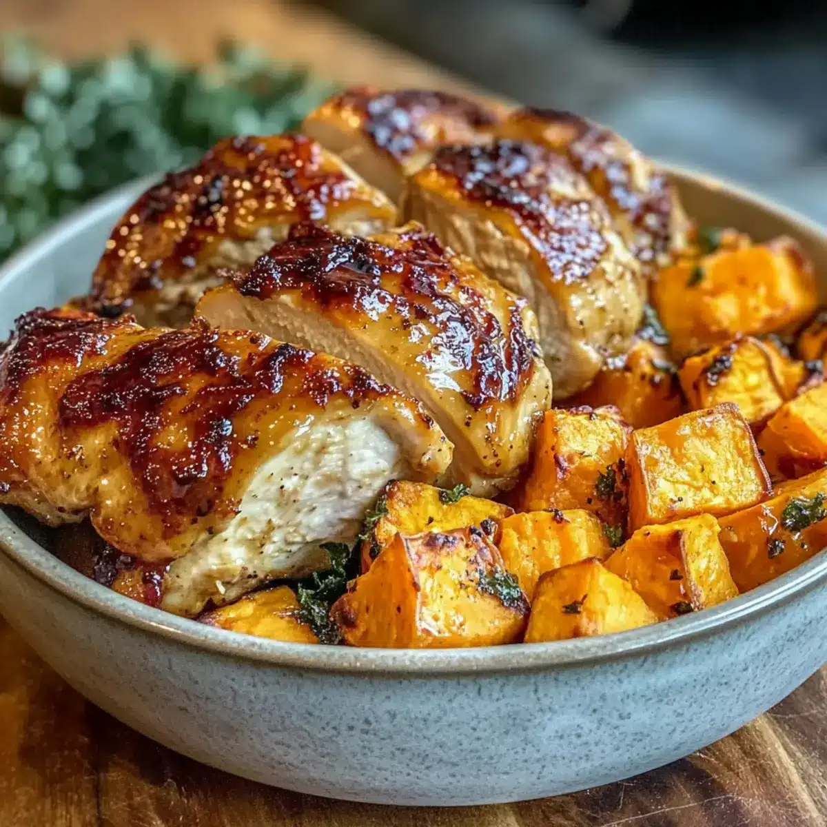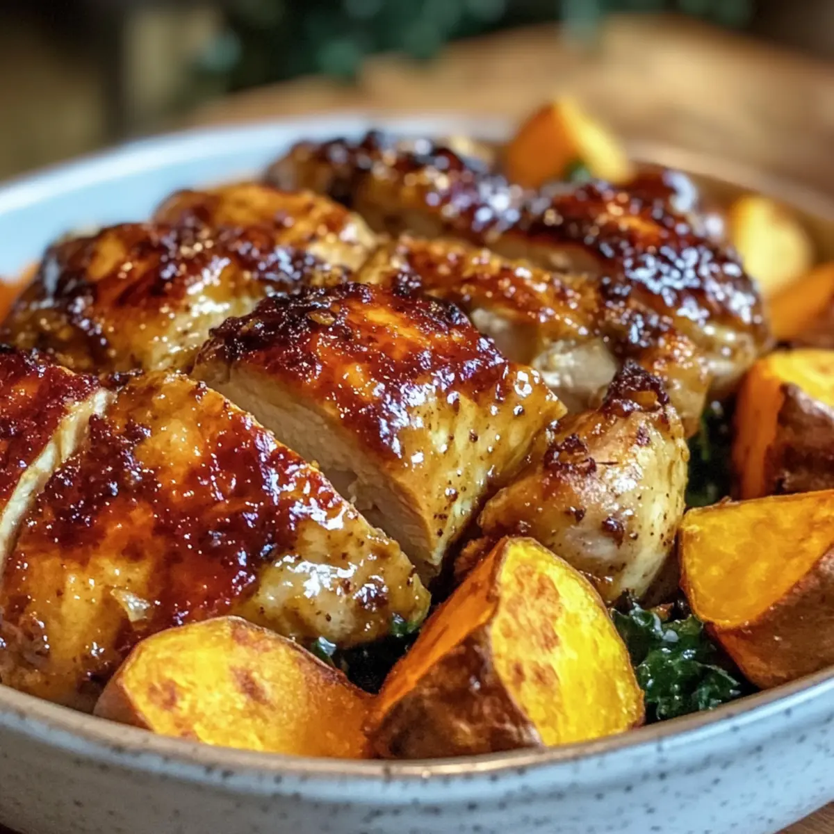 Maple Dijon Hähnchen Bowl mit Süßkartoffeln für den Herbst