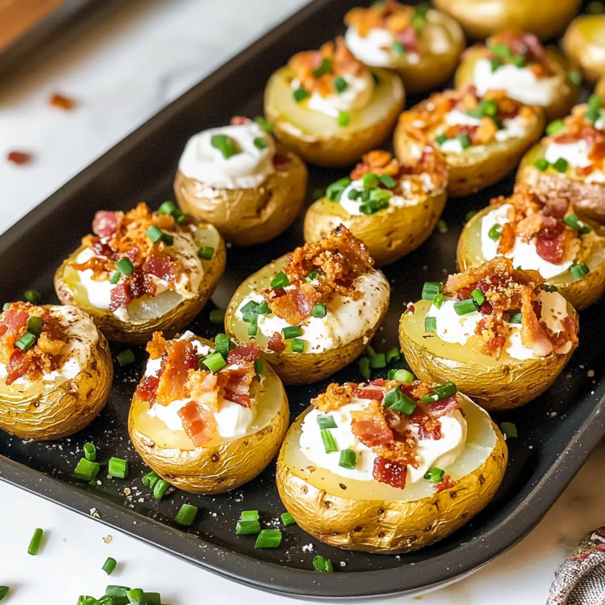 Geselligkeit: Diese Mini Ofenkartoffeln sind ideal für Partys oder als Snack im Freundeskreis – sie werden garantiert im Nu verschwinden!
