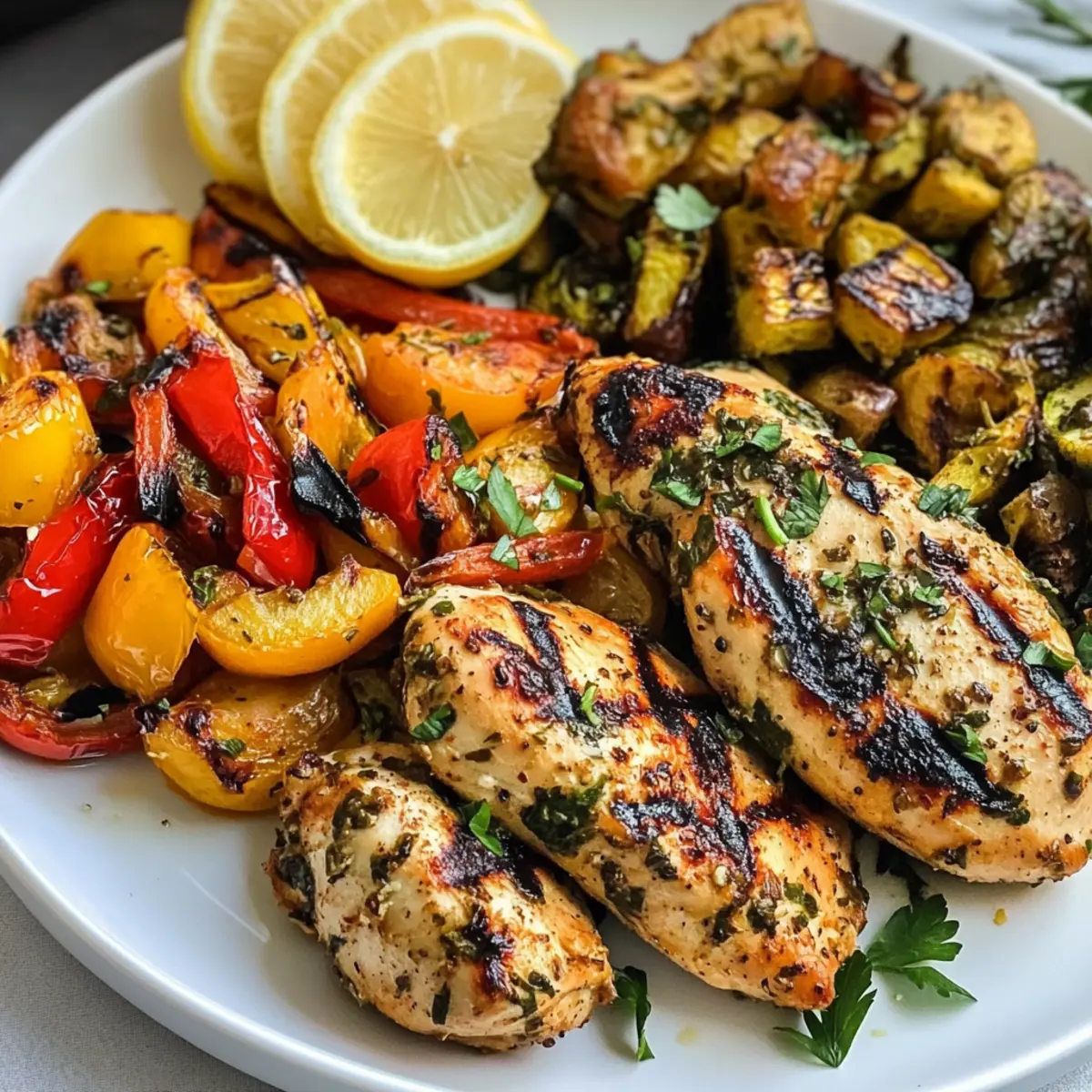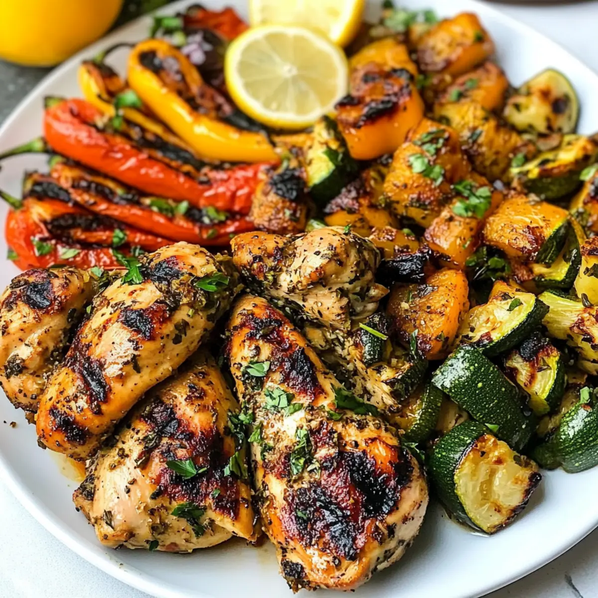 - Grüne Variante: Ersetze das Hähnchen durch Lammkoteletts, um eine herzhafte und zarte Alternative zu genießen, die perfekt zur mediterranen Marinade passt.