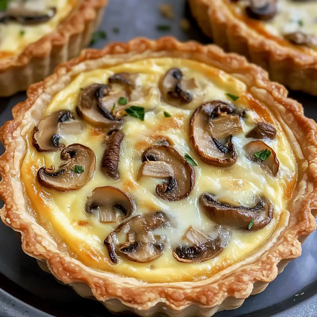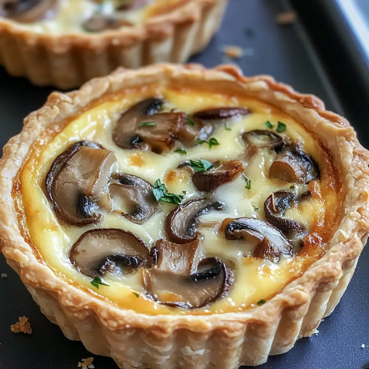 Um eine knusprige Kruste zu gewährleisten, brate die Pilze gründlich an, bevor du sie in die Quiche gibst. Achte darauf, nicht zu viele Flüssigkeiten in die Füllung zu geben und die Quiches immer gut zu backen, bis die Ränder goldbraun sind.