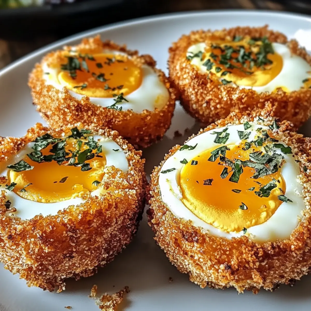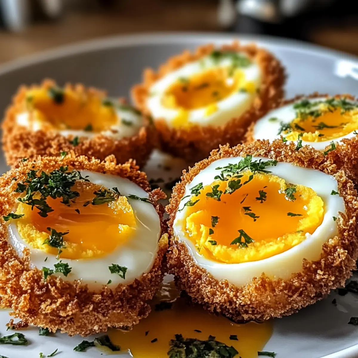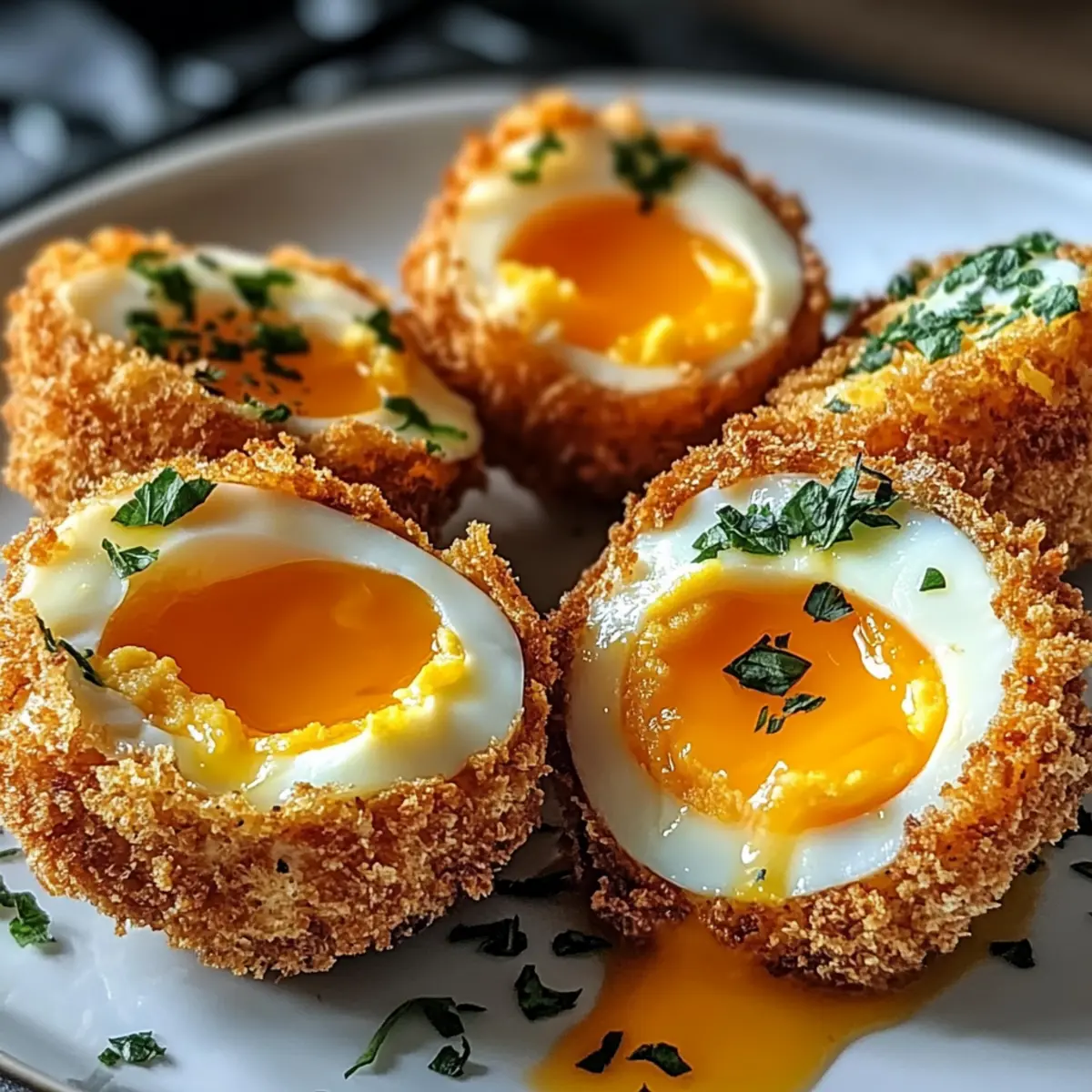 Einzigartiger Genuss: Diese panierte Eier verbinden knusprige Textur mit einer cremigen Füllung und sorgen für ein unvergessliches Geschmackserlebnis.